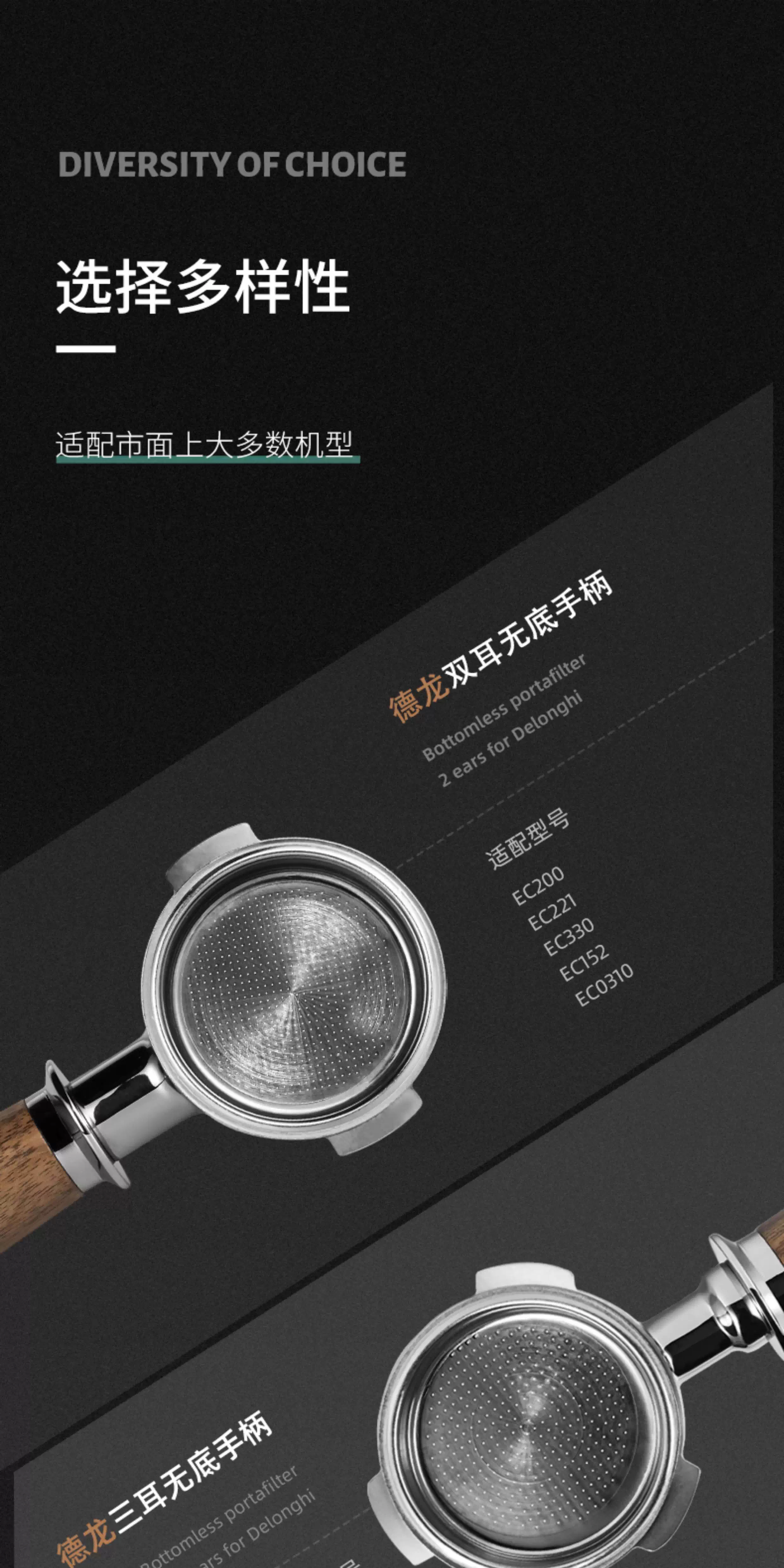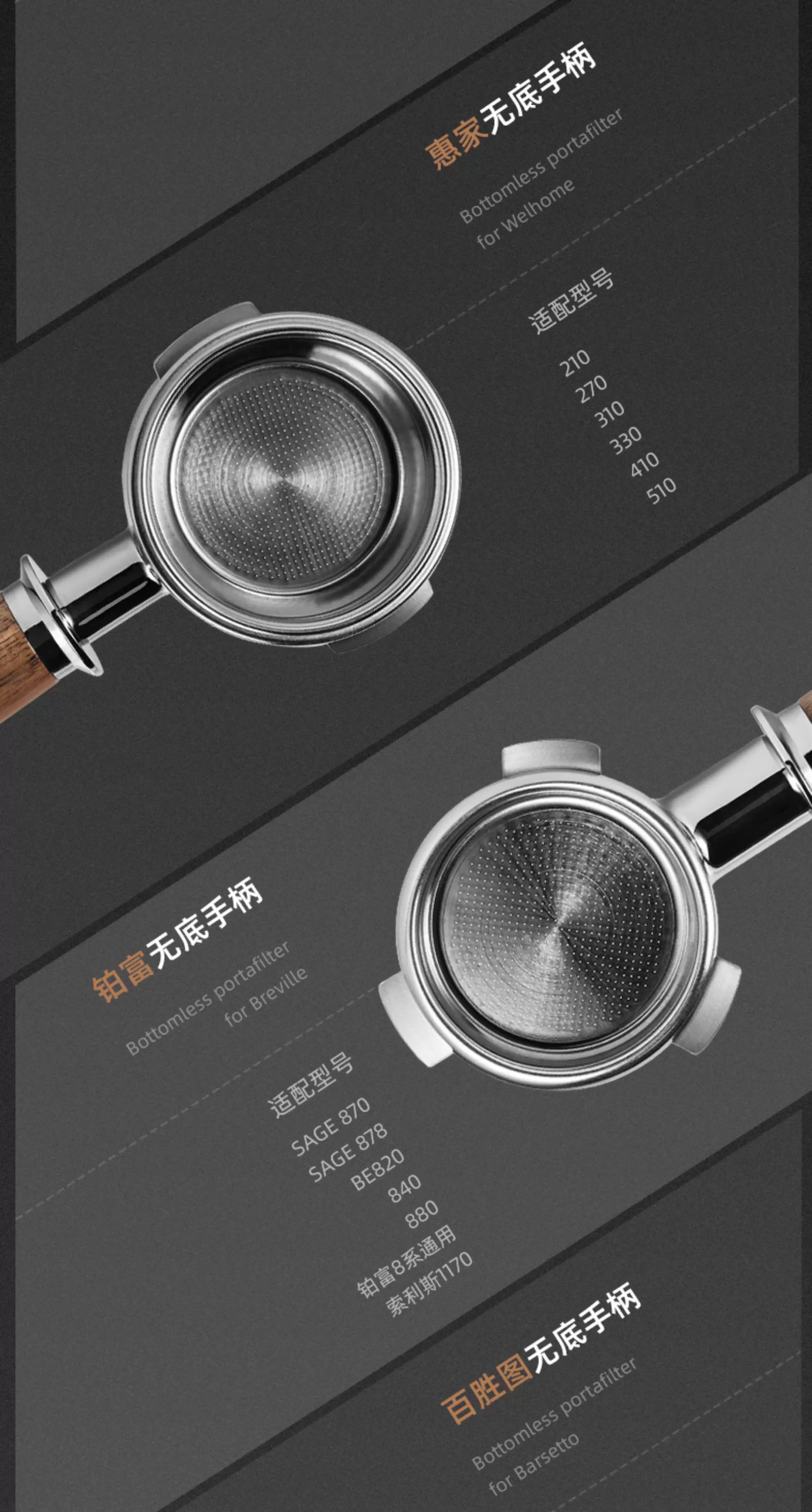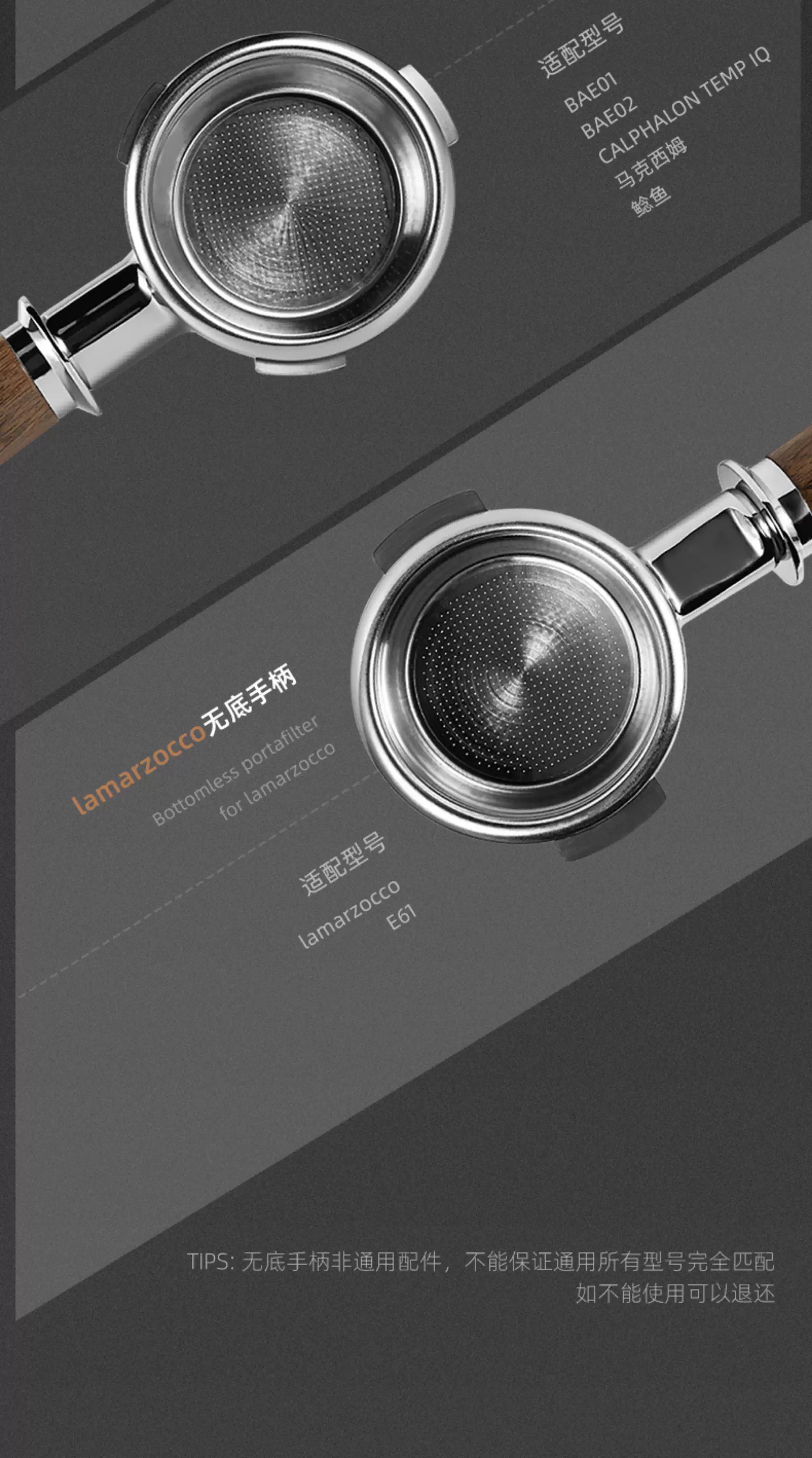 - Bộ lọc cà phê không đáy cho máy pha cà phê Espresso, kích thước 51/54/58mm, tay cầm đầu pha không đáy