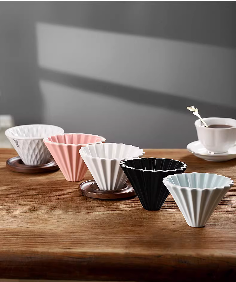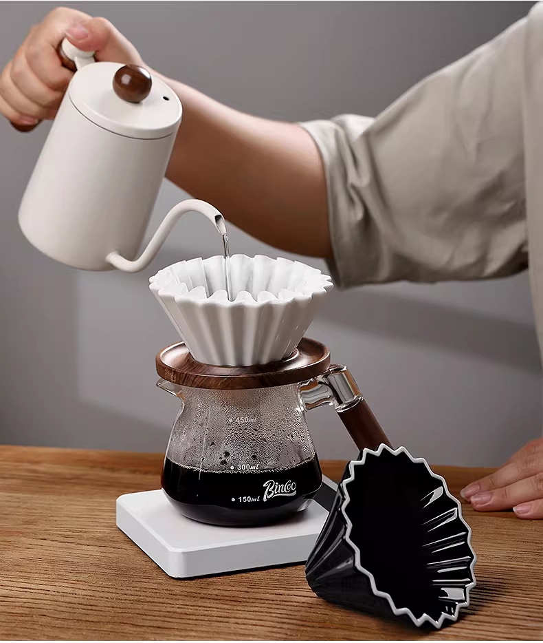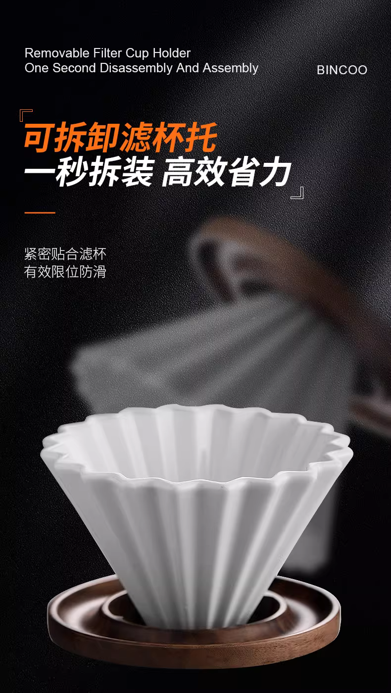- Bộ lọc cà phê thủ công Bincoo, cốc lọc gốm gia dụng, giá đỡ cốc lọc gỗ óc chó, bộ giấy lọc bánh V60