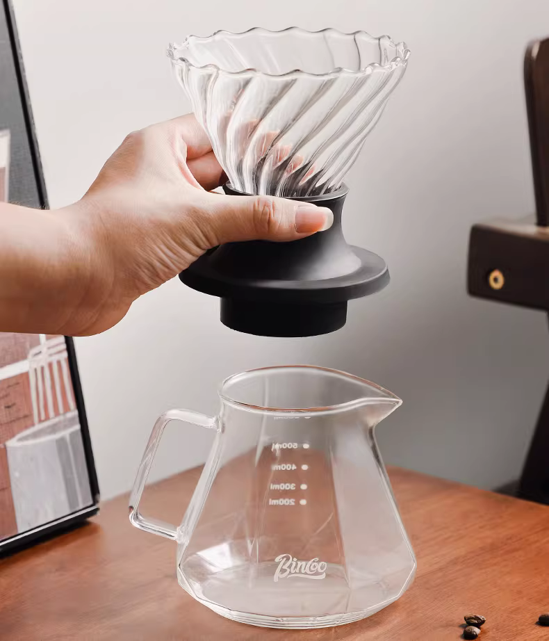 - Bộ lọc pha cà phê thủ công thông minh Bincoo Hand Brew Smart Cup Sharing Pot Set V60, kiểu ren xoắn ốc, cốc lọc thủy tinh