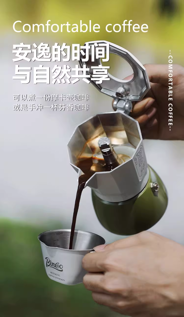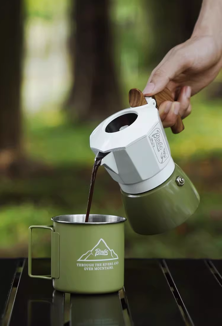 Bộ pha cà phê Bincoo Moka du lịch ngoài trời, bình pha cà phê hai van, máy pha cà phê kiểu Ý, thiết bị cắm trại di động