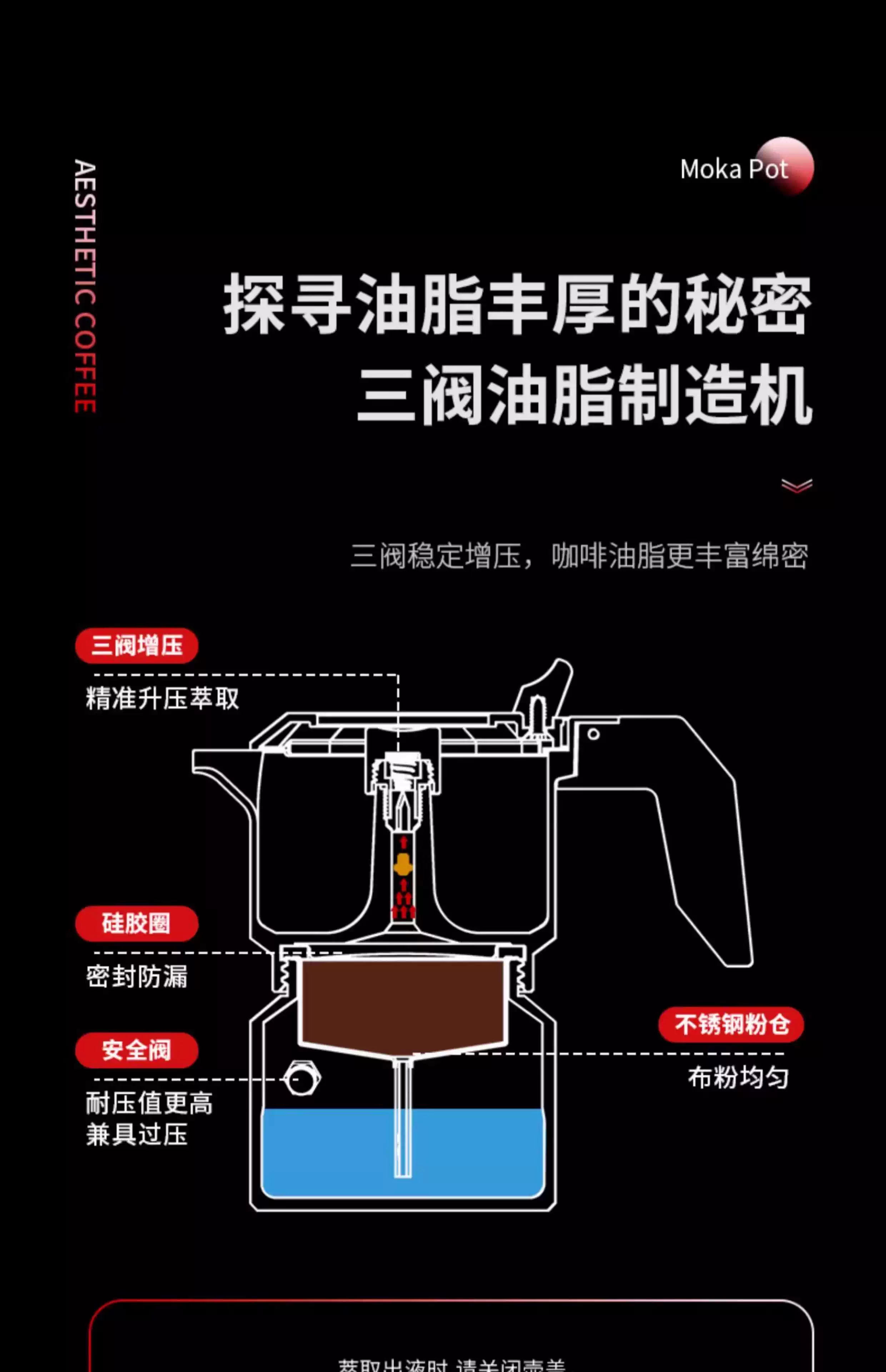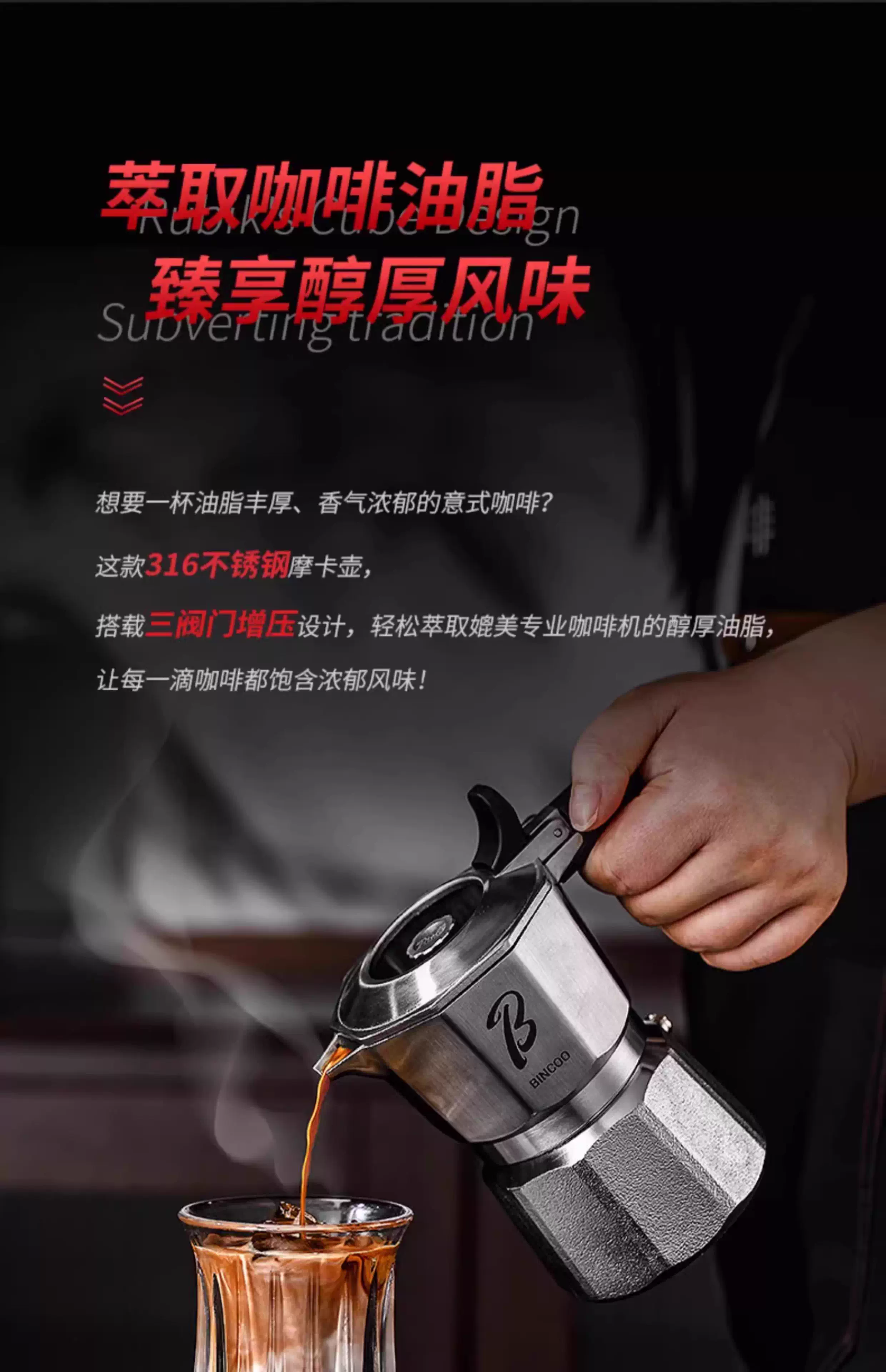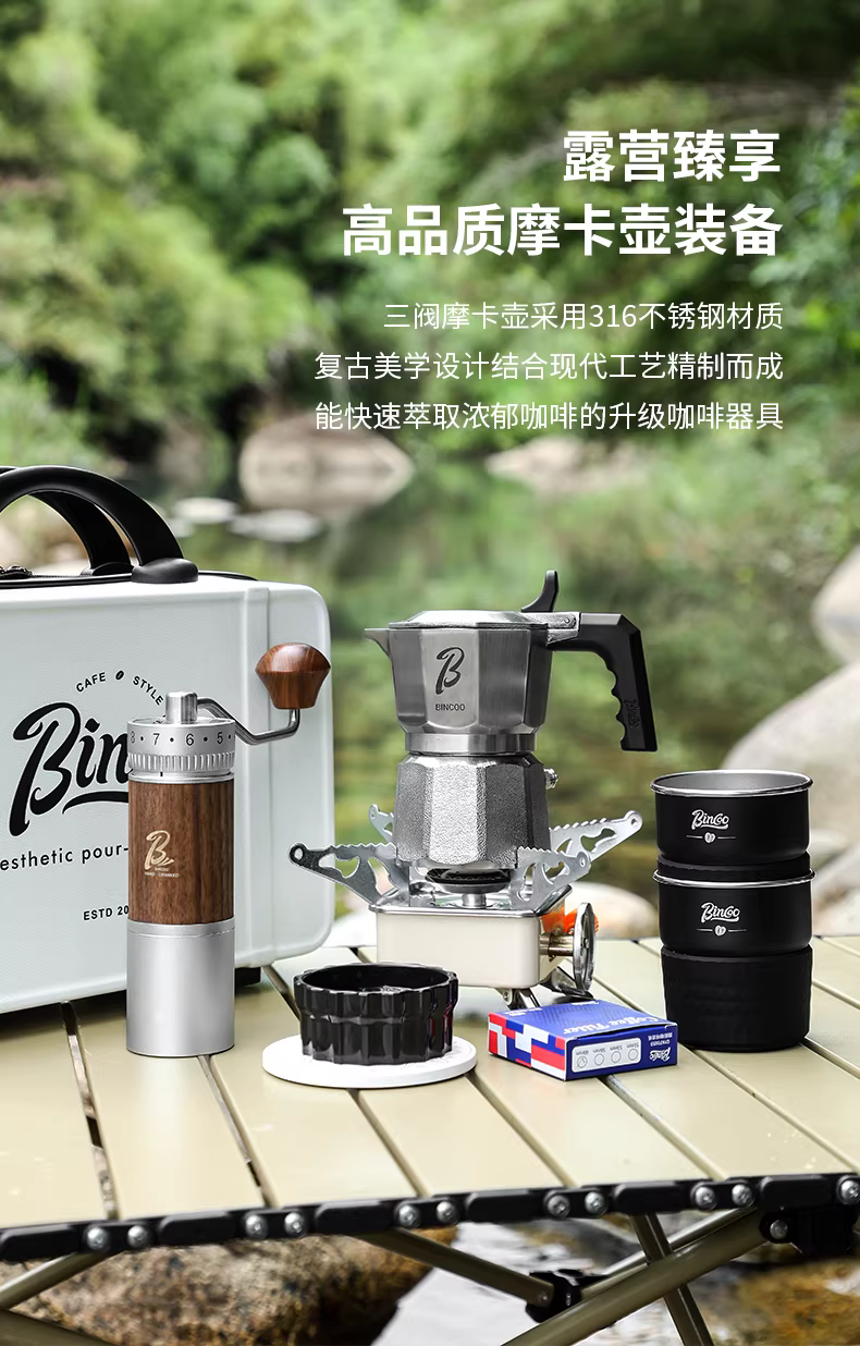 Bộ pha cà phê moka bằng thép không gỉ 316 ba van Bincoo, máy pha cà phê hai van dùng cho gia đình, bộ pha cà phê espresso nhỏ gọn dùng ngoài trời