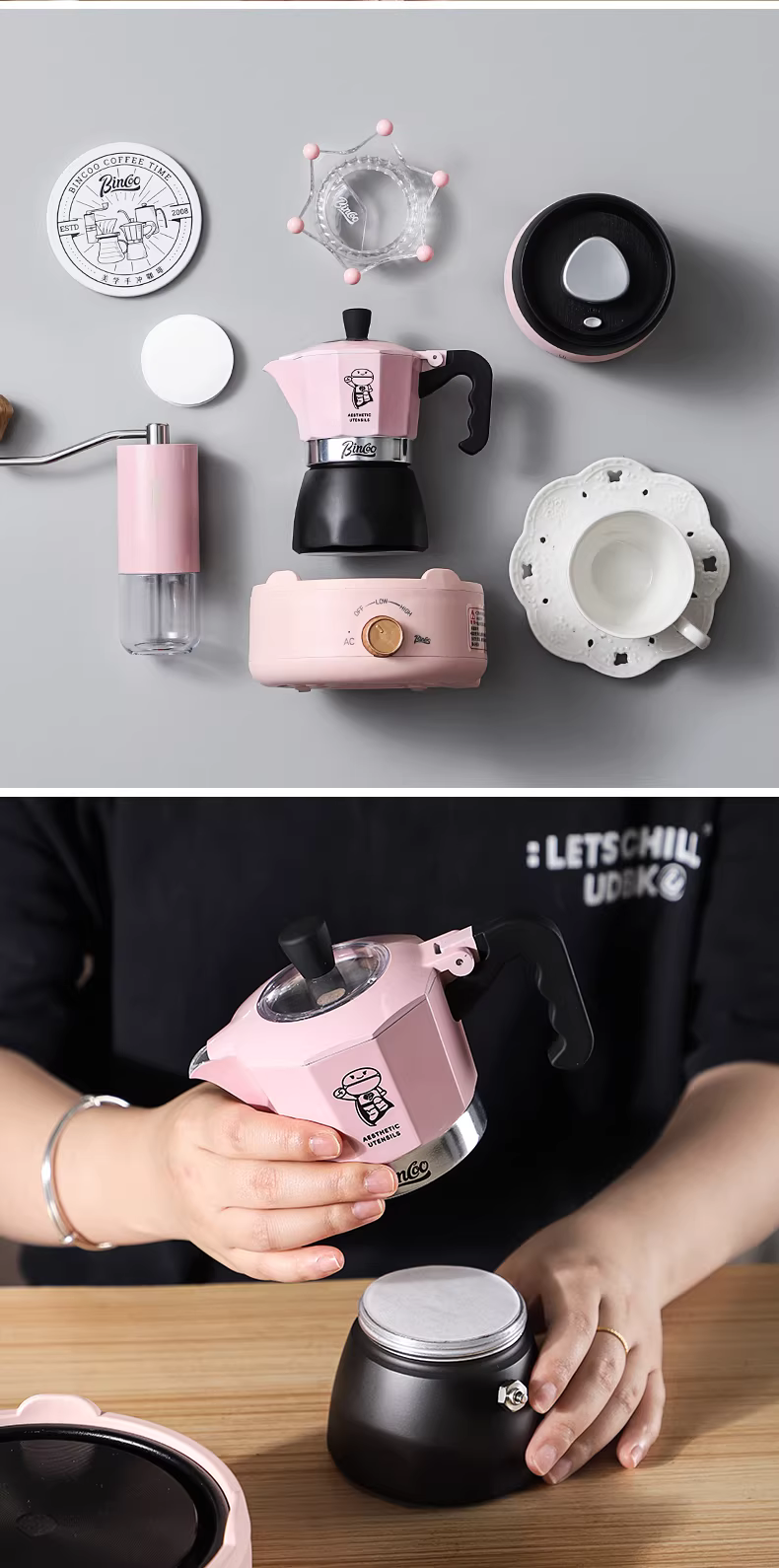 - Bộ pha cà phê Moka Bincoo, bếp điện gốm sứ gia dụng, bộ dụng cụ pha cà phê Espresso, hộp quà tặng lý tưởng để làm quà tặng