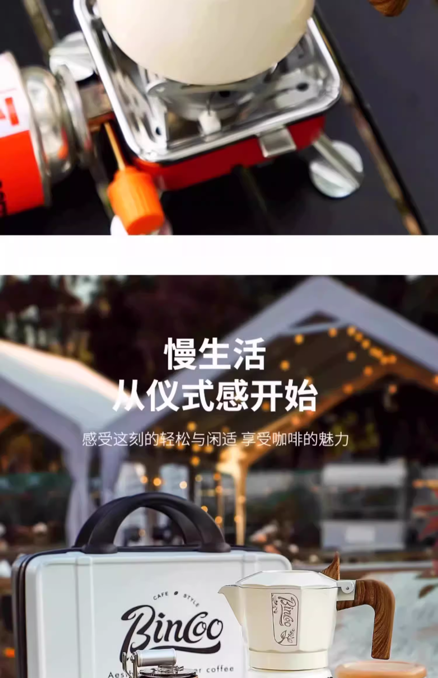 - Bộ pha cà phê Moka Bincoo hai van, dùng ngoài trời, bộ dụng cụ pha cà phê kiểu Ý di động, kèm túi đựng