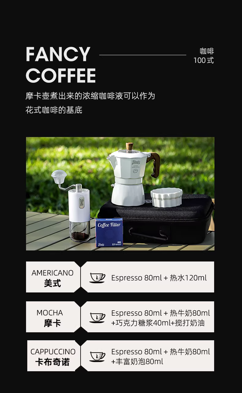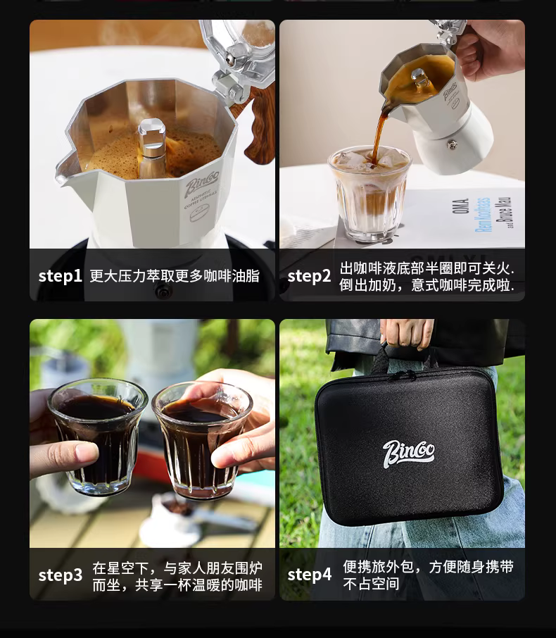 - Bộ pha cà phê Moka Bincoo nhỏ gọn, dùng ngoài trời, bộ pha cà phê espresso di động, kèm túi đựng, bộ dụng cụ du lịch đầy đủ