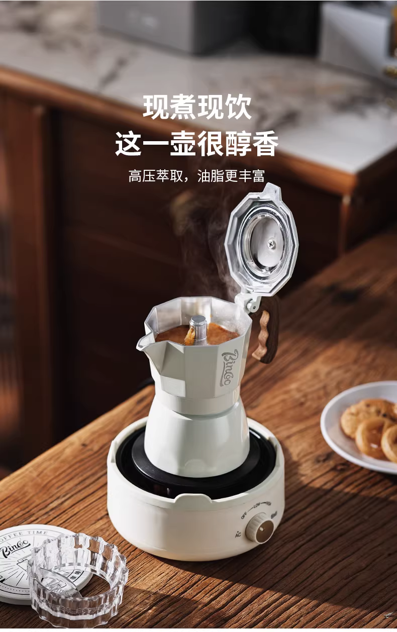 Bộ pha cà phê moka hai van Bincoo dùng trong gia đình, máy pha cà phê espresso nhỏ, máy pha cà phê kiểu Ý, dụng cụ pha cà phê