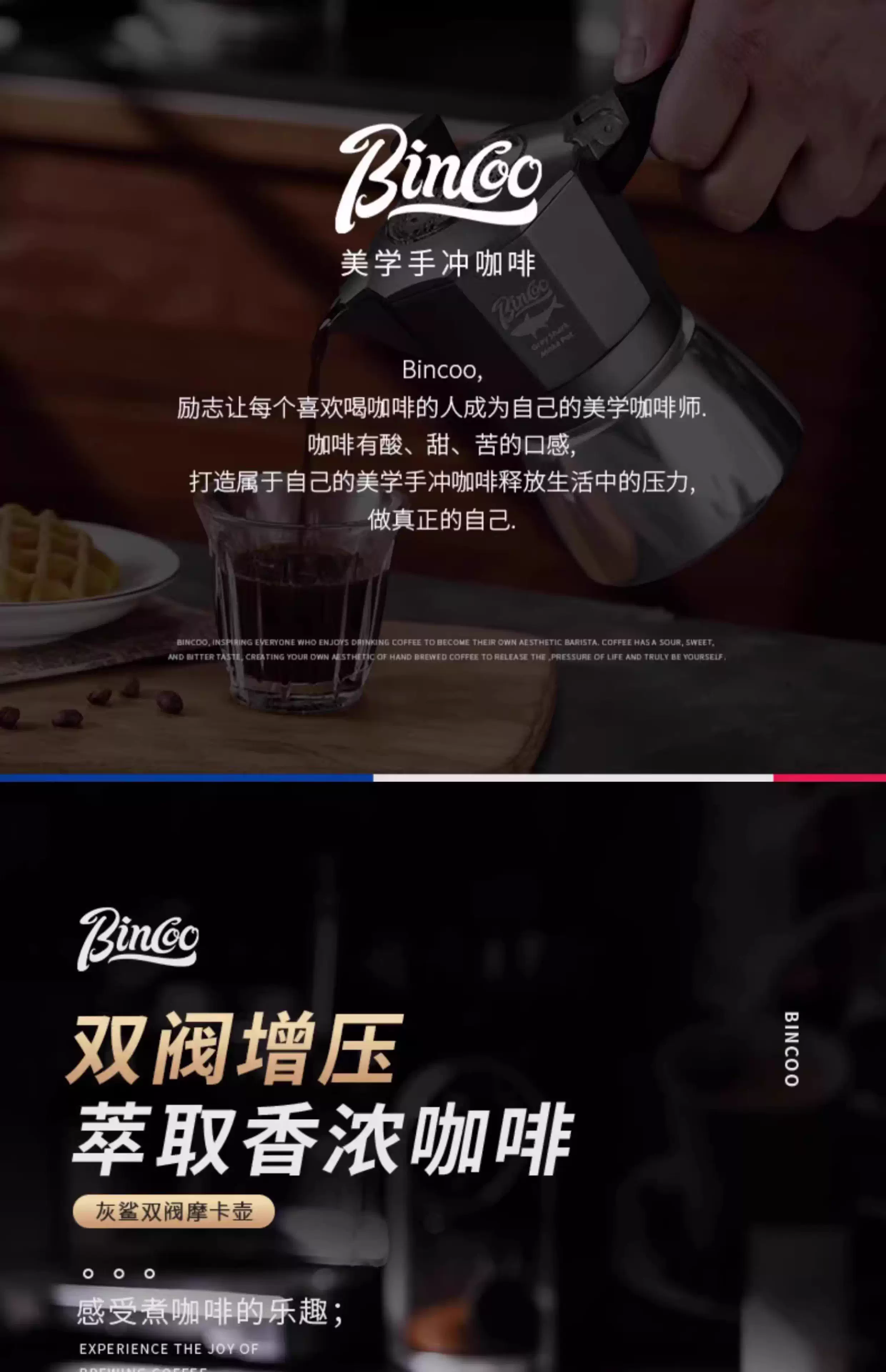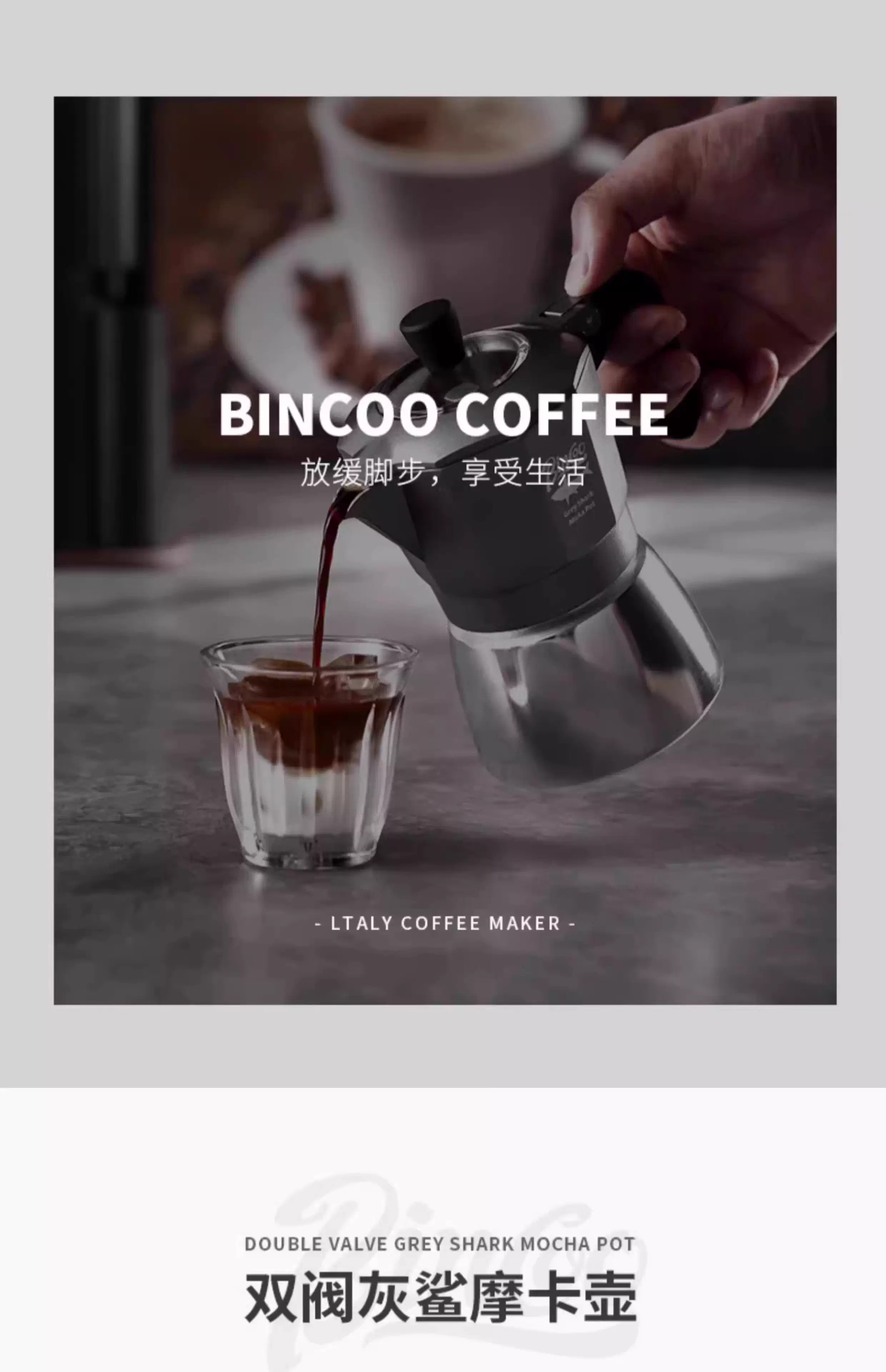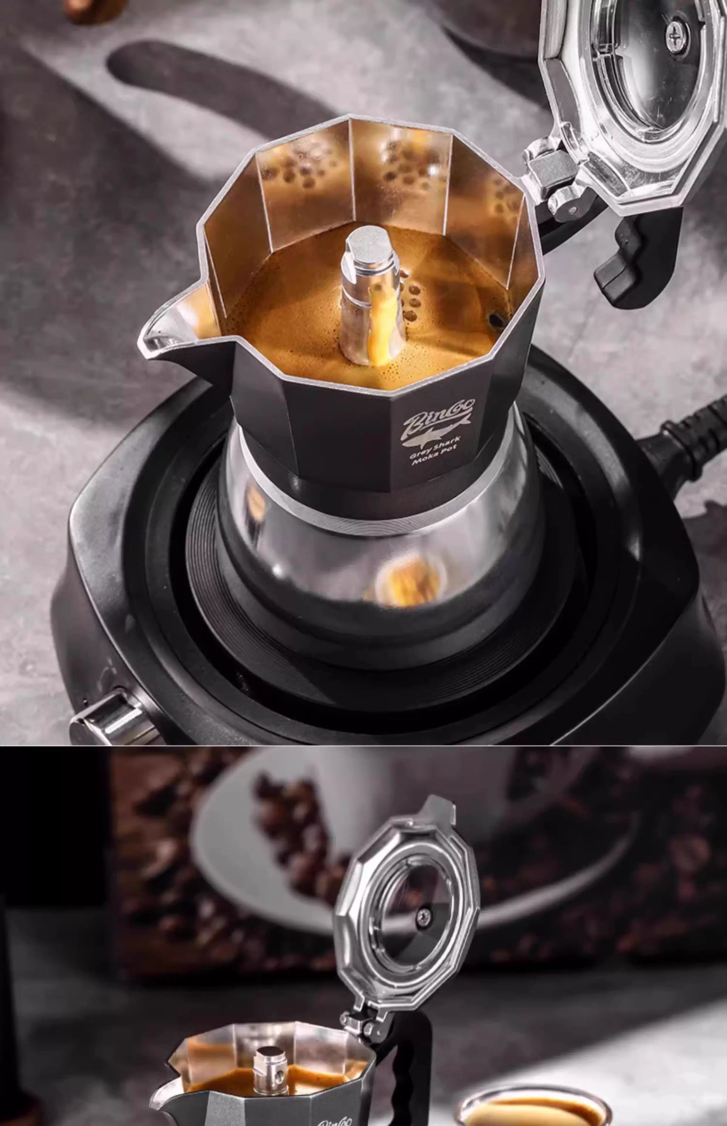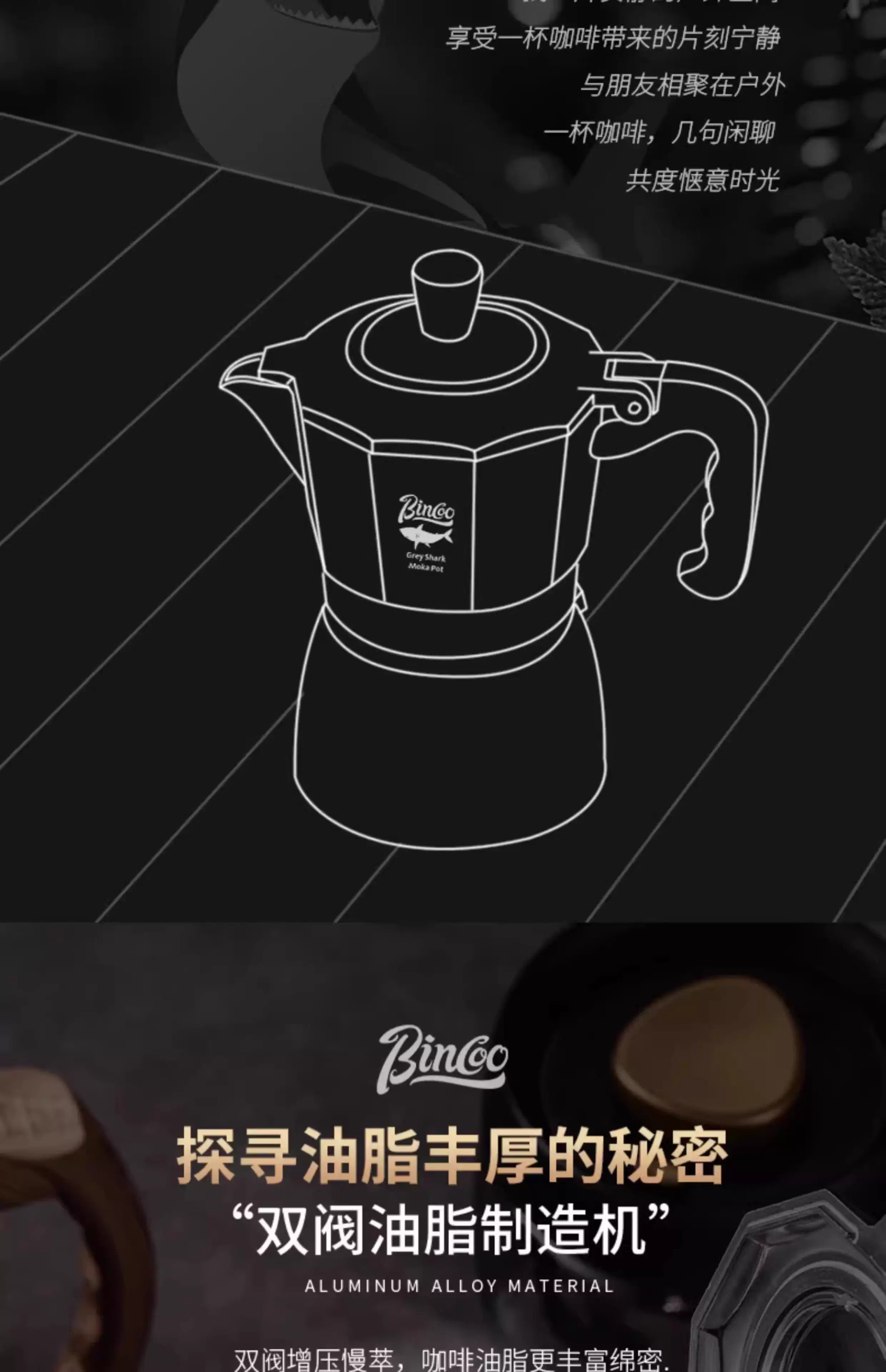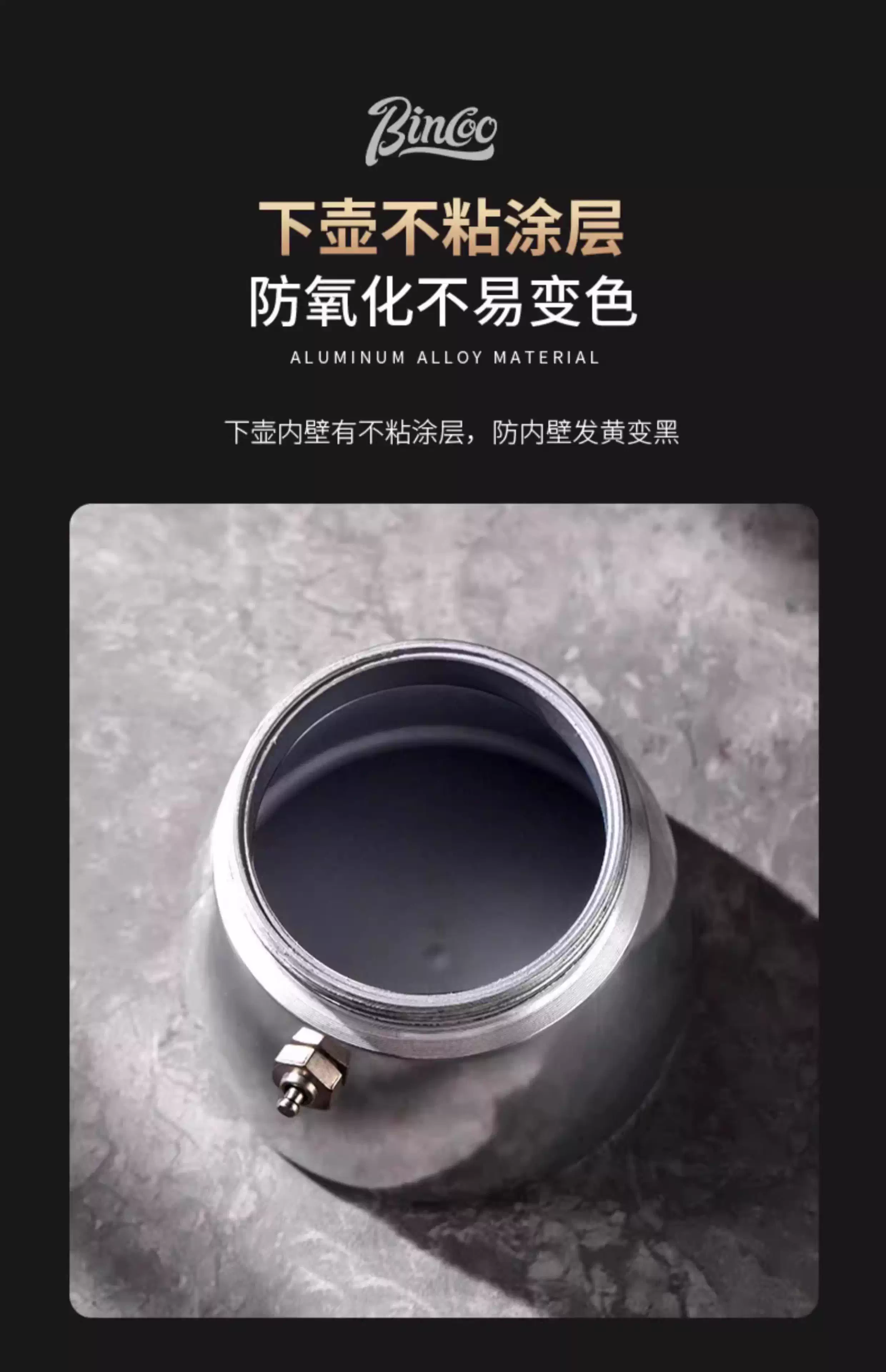 - Bộ pha cà phê Moka Ý Bincoo hai van, nhỏ gọn, dùng tay quay, dùng được trên bếp điện, bộ dụng cụ pha cà phê ngoài trời