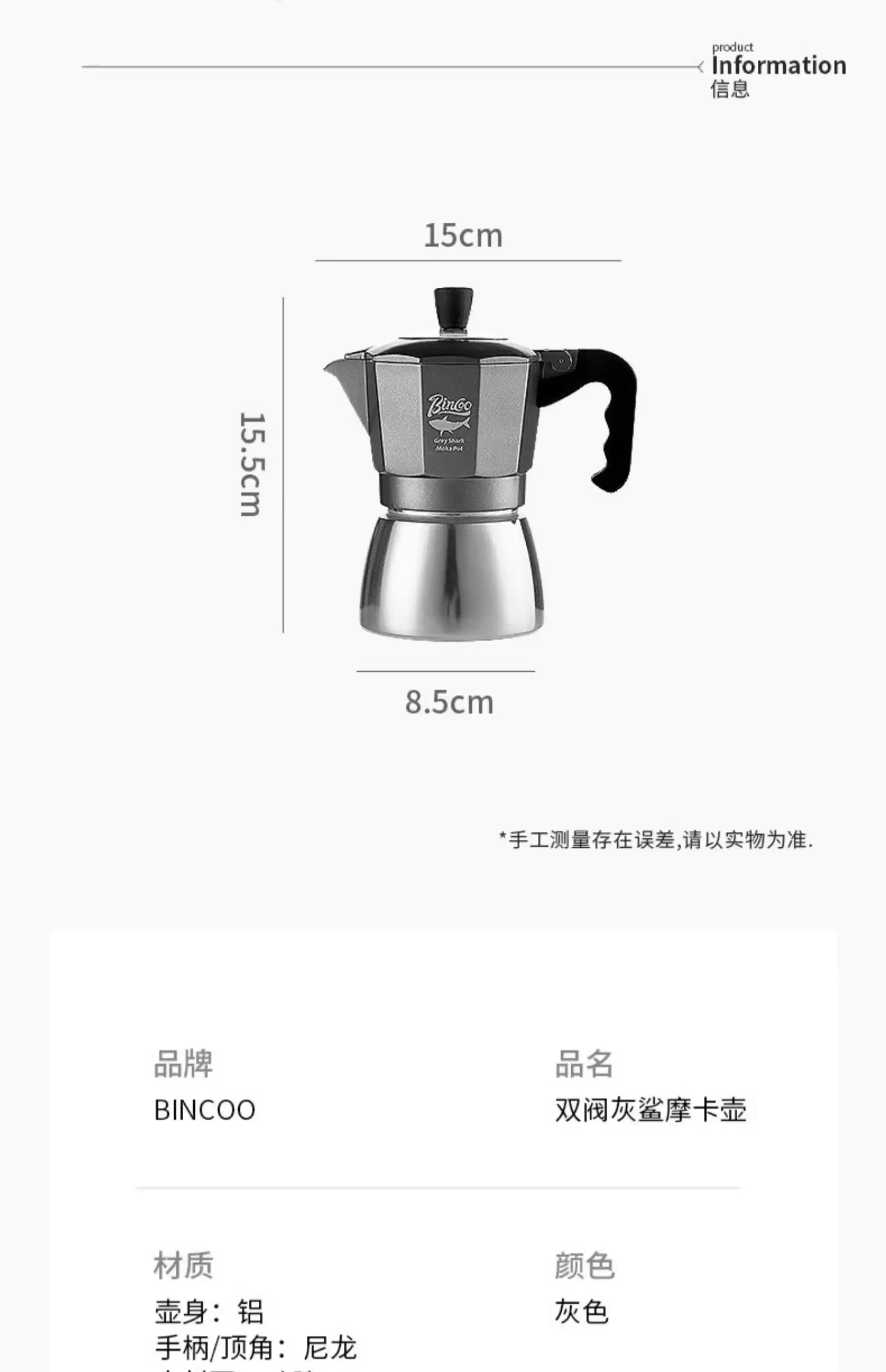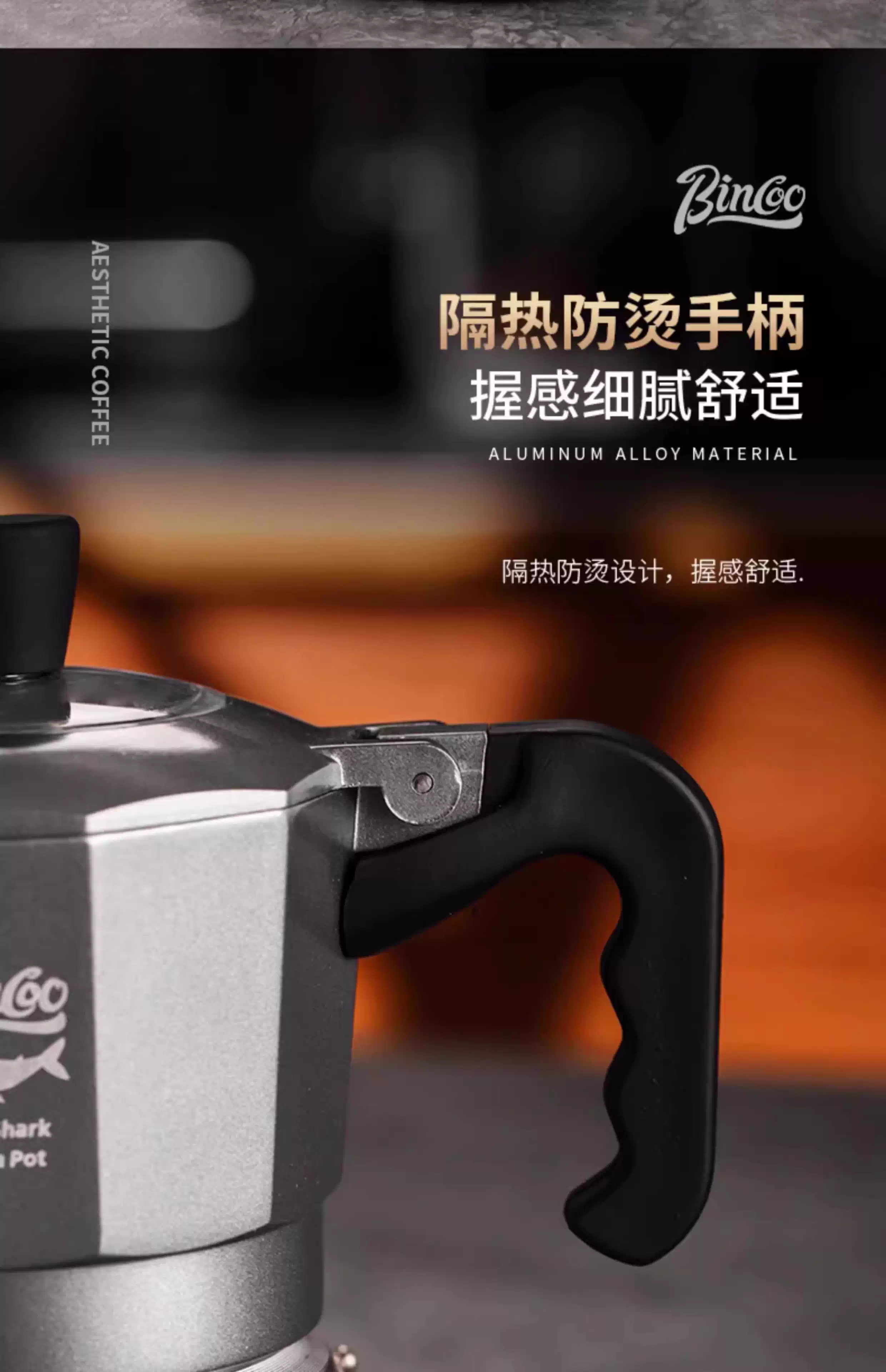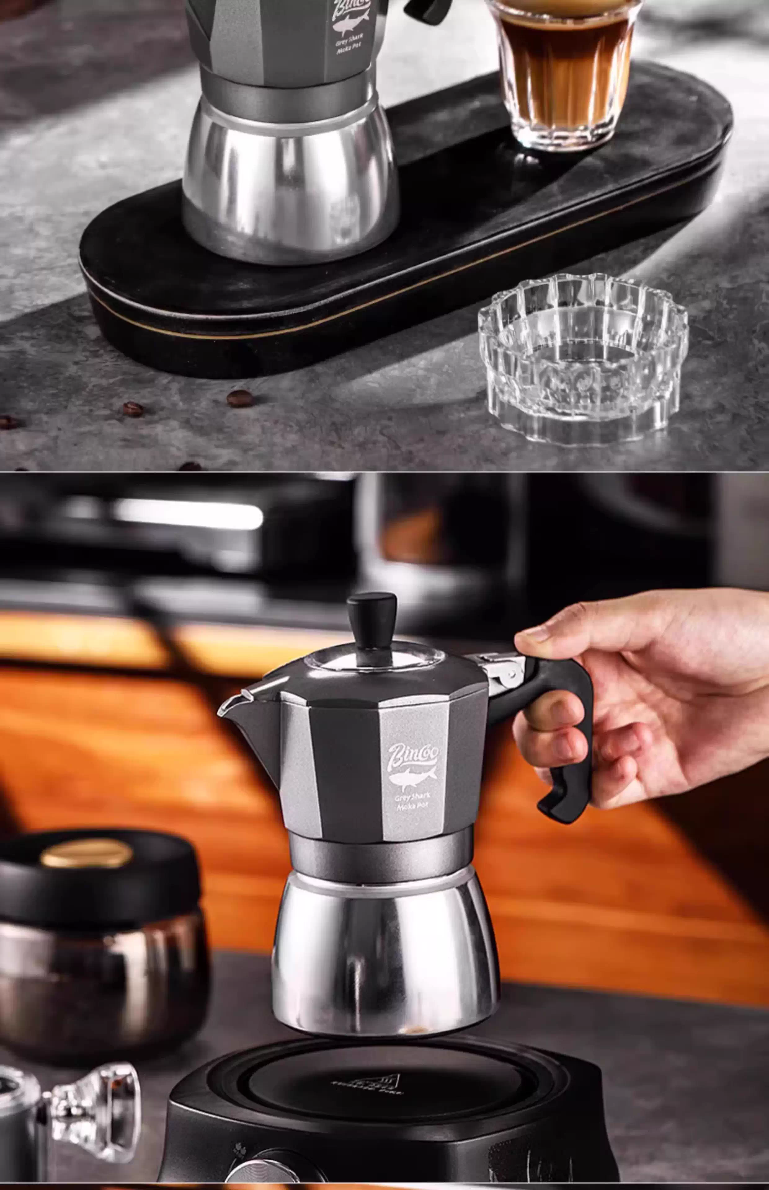Bộ pha cà phê Moka Ý Bincoo hai van, nhỏ gọn, dùng tay quay, dùng được trên bếp điện, bộ dụng cụ pha cà phê ngoài trời