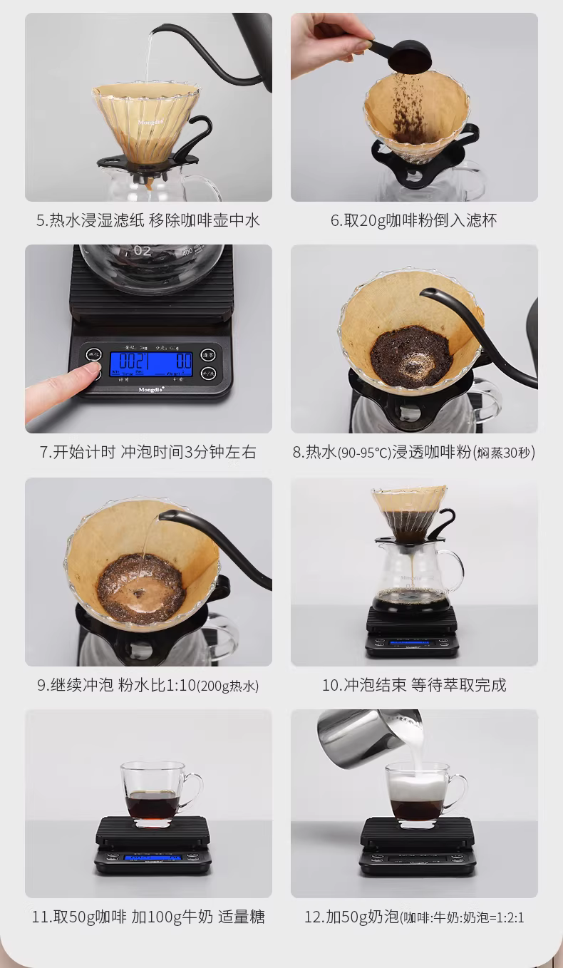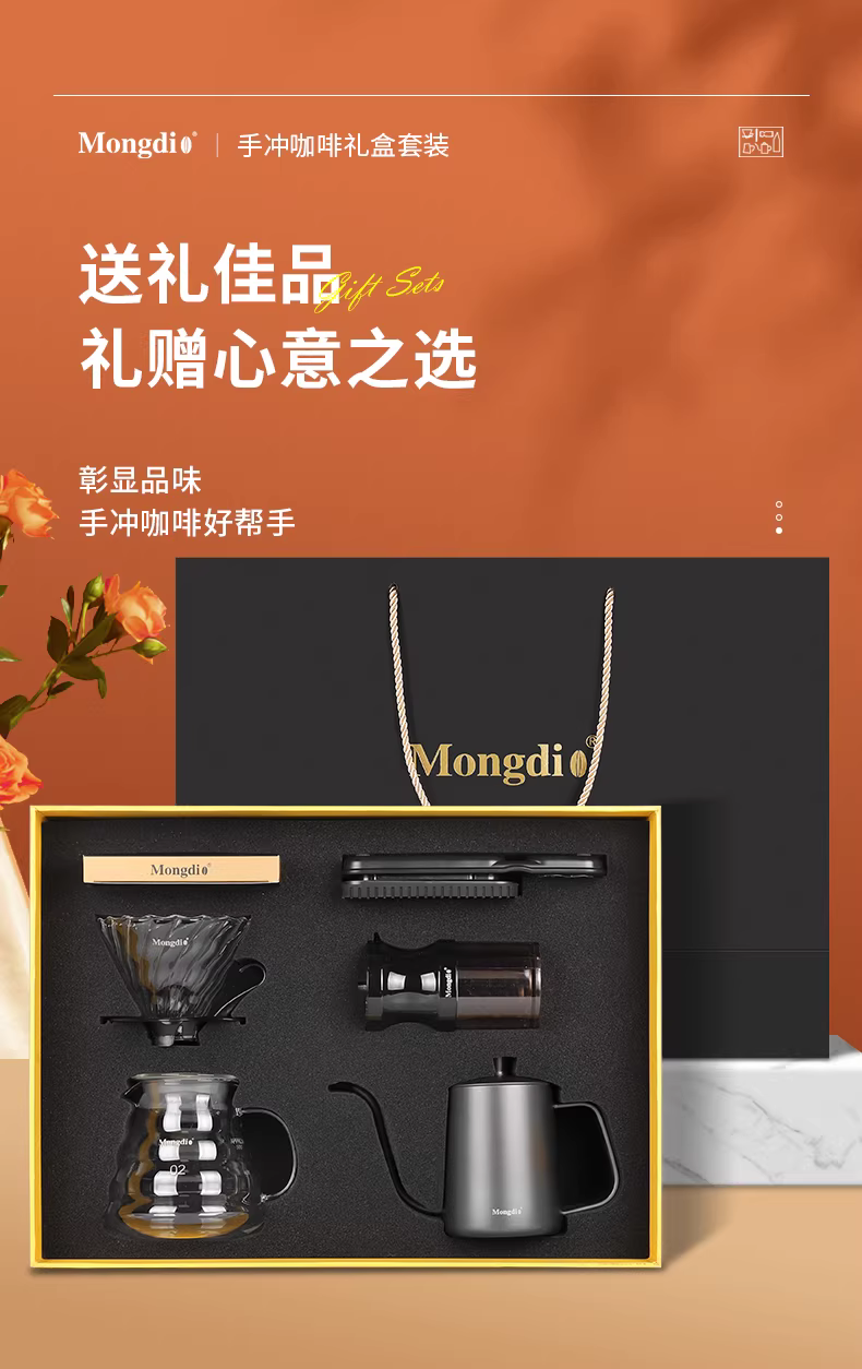 - Bộ pha cà phê Pour-over Mongdio, gồm cốc lọc cà phê, máy xay, ấm pha cà phê, dụng cụ pha cà phê, hộp quà tặng