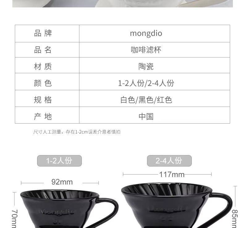 Bộ pha cà phê Pour Over Mongdio V60, cốc lọc gốm, bộ lọc cà phê, bình chia cà phê, thiết bị pha cà phê nhỏ giọt