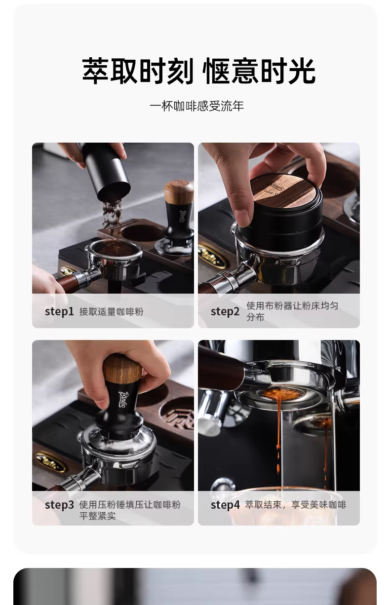 - Bộ phụ kiện máy pha cà phê Bincoo ba chức năng 51/58mm với bộ dụng cụ kết hợp tách cà phê và dụng cụ nén cà phê