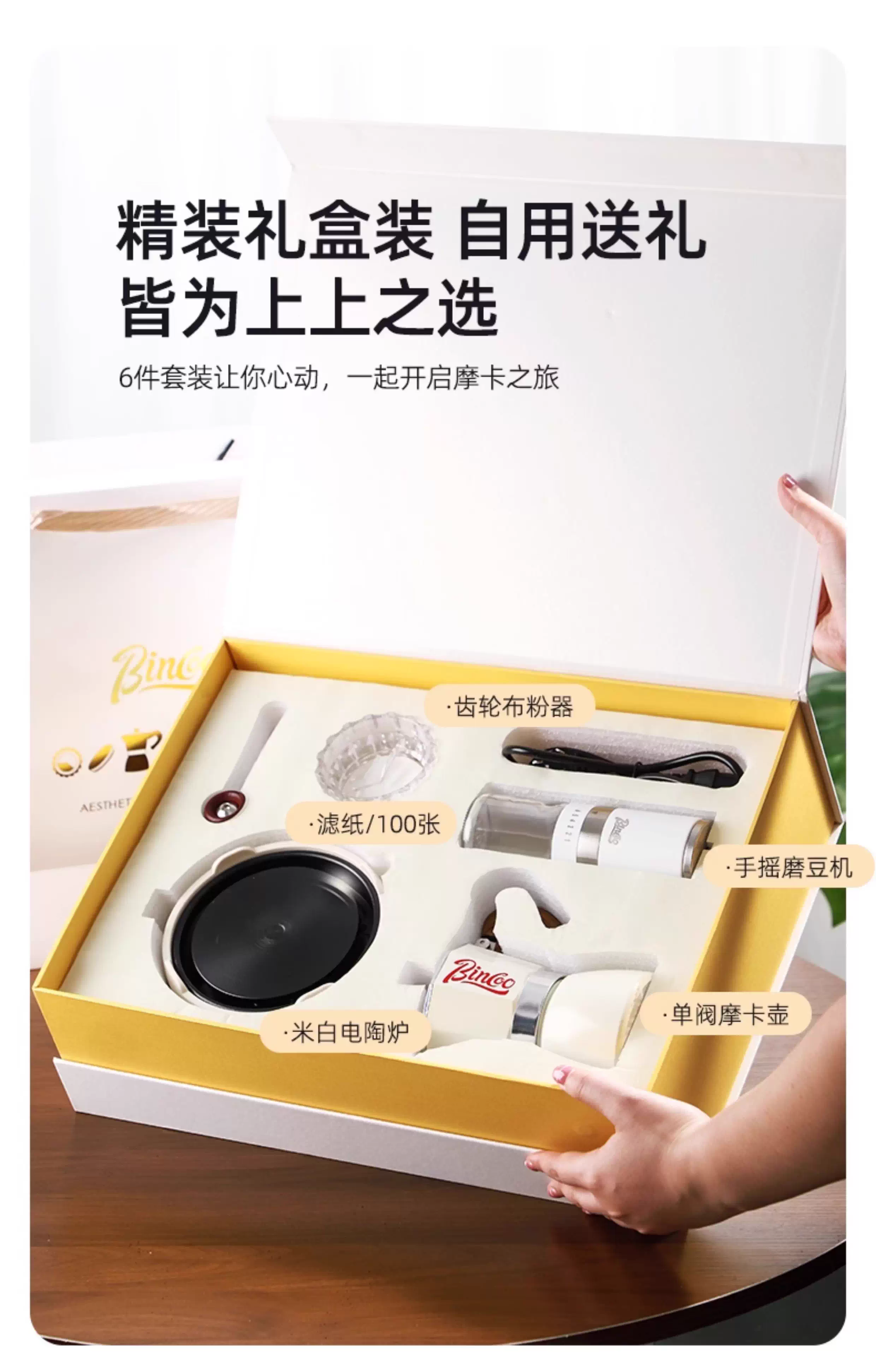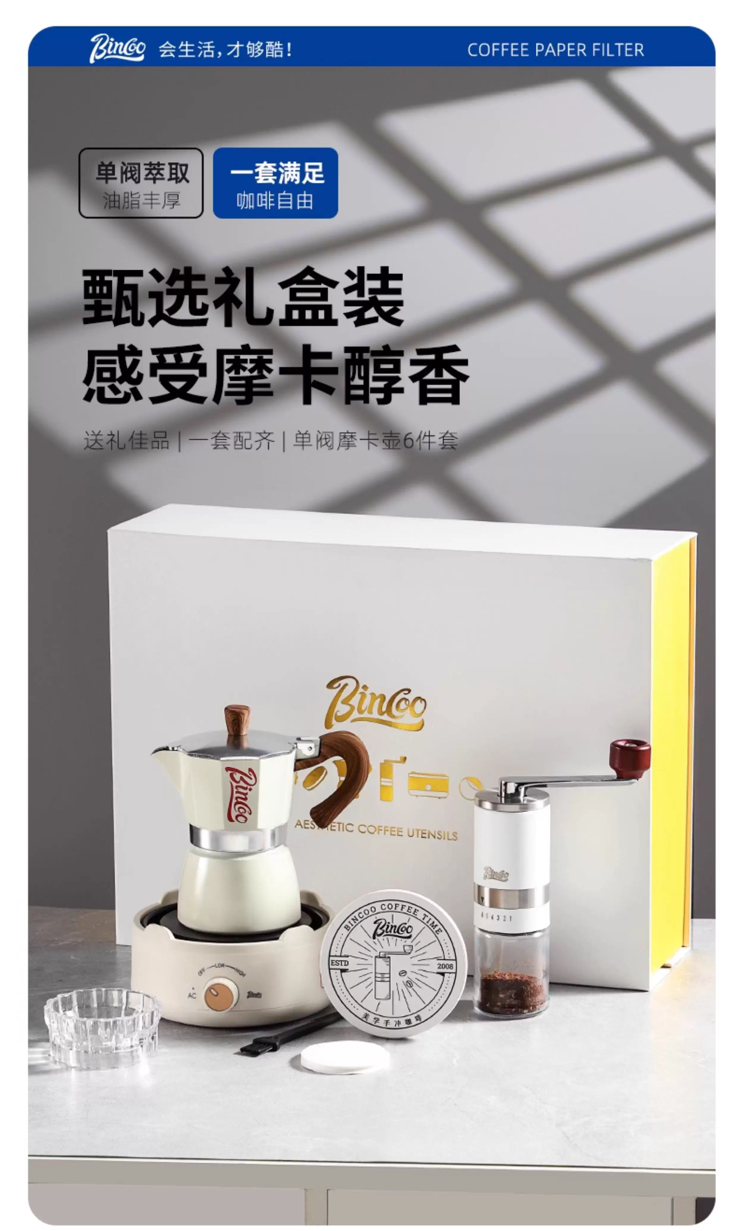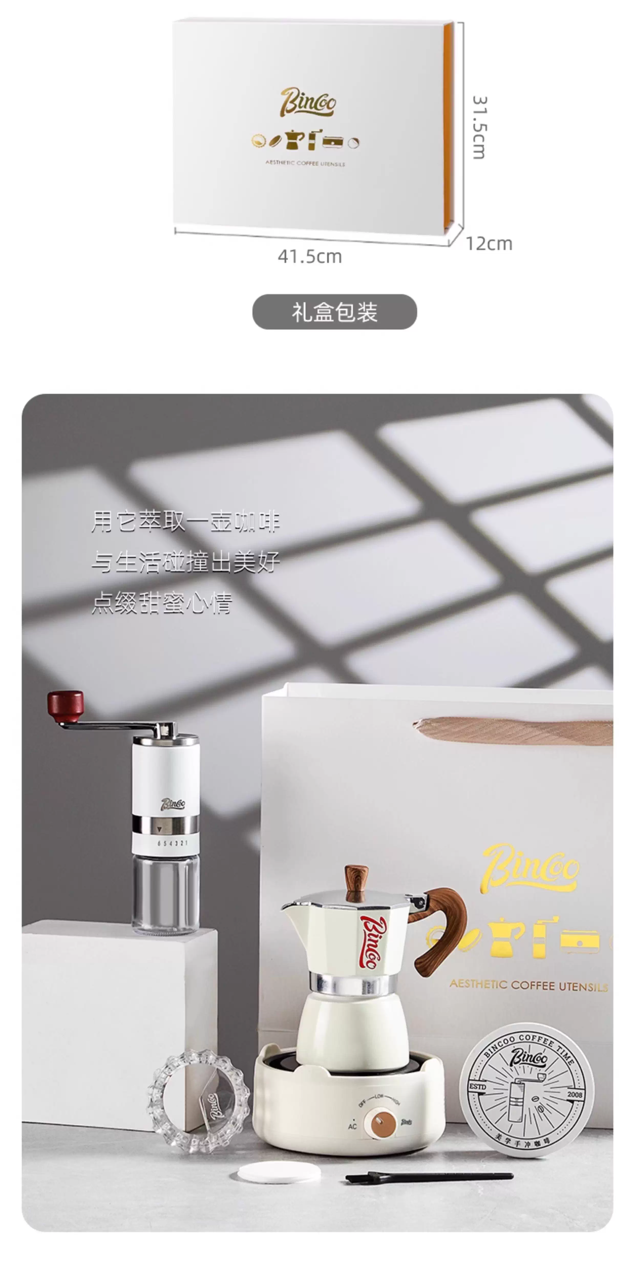 Bộ quà tặng ấm pha cà phê Bincoo Moka, quà tân gia cho bạn thân, quà ngày lễ, quà sinh nhật sáng tạo cho bạn bè