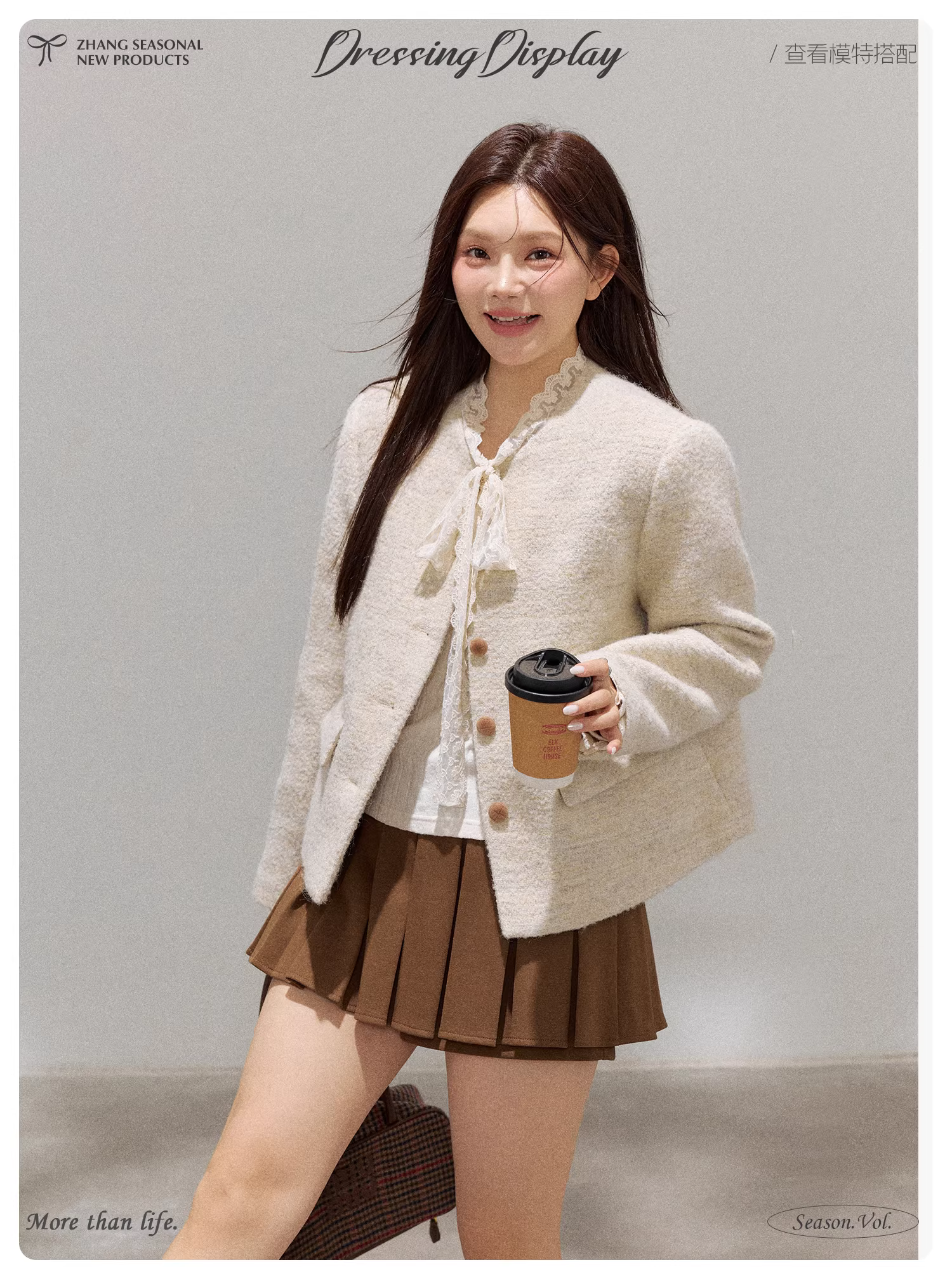 Bộ quần áo len dáng dài thanh lịch, màu cà phê, dành cho phụ nữ mũm mĩm, mùa thu đông, giúp thon gọn vóc dáng.