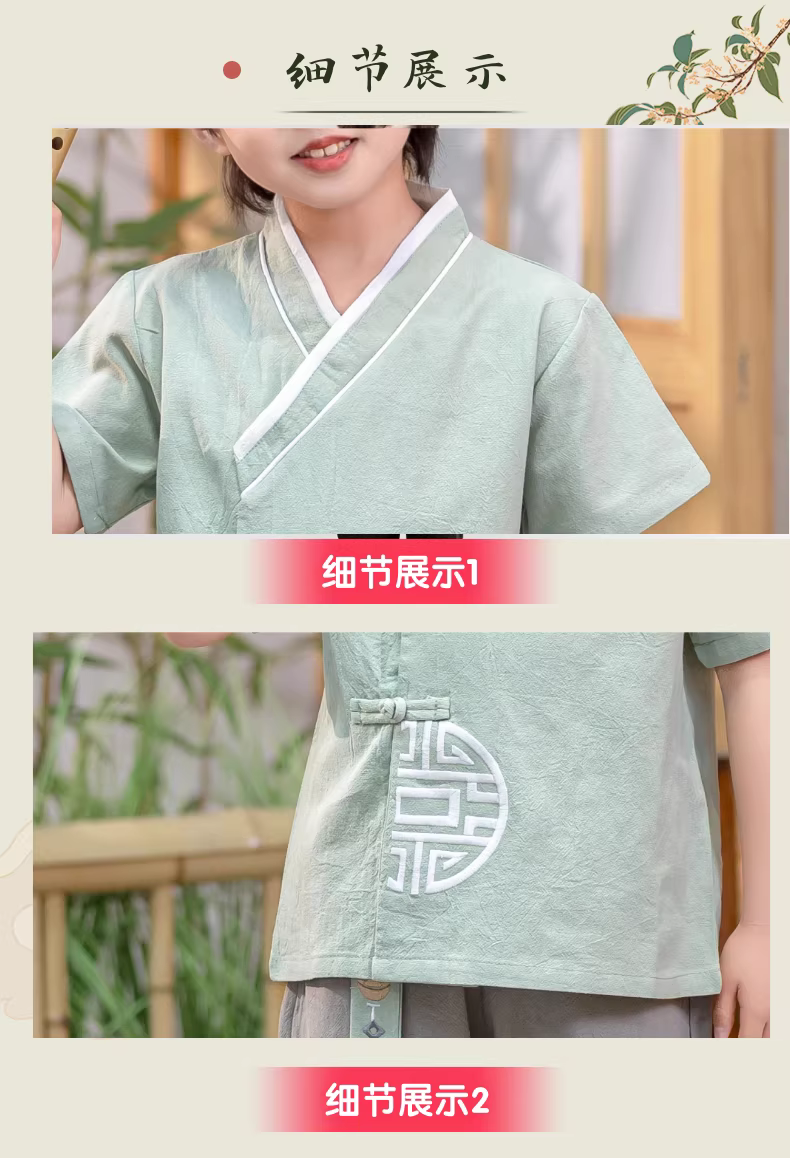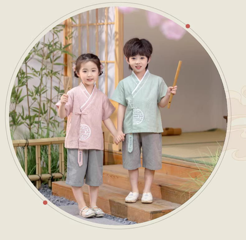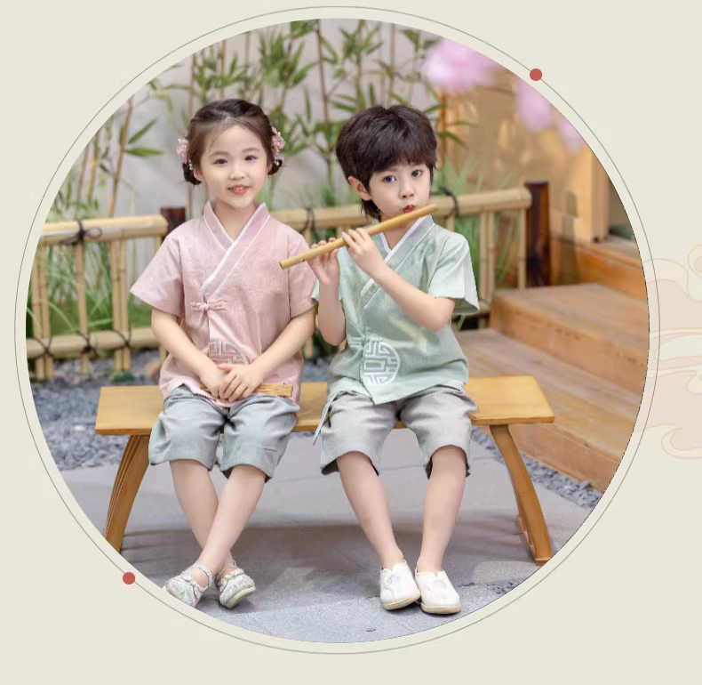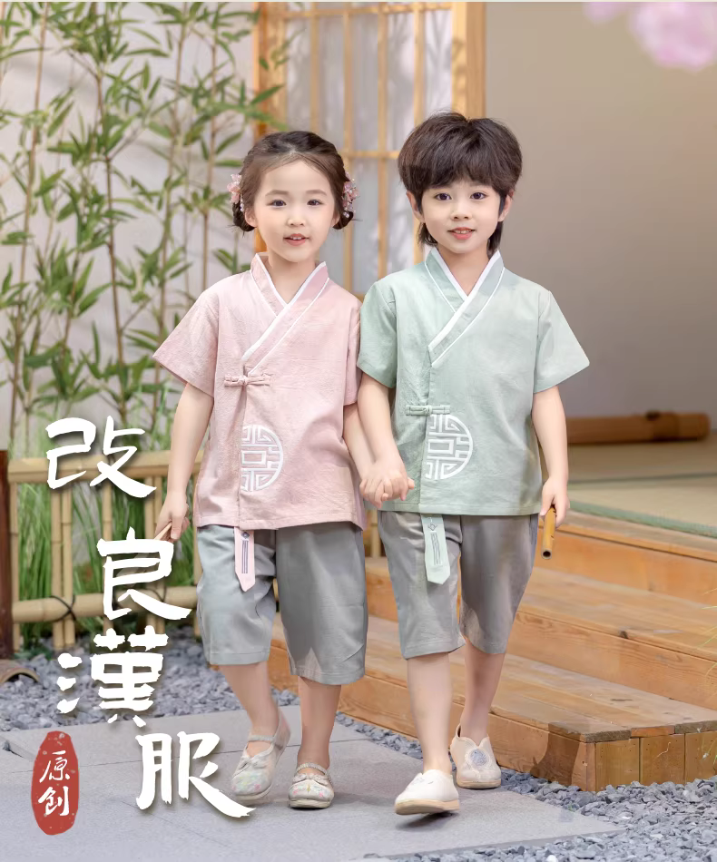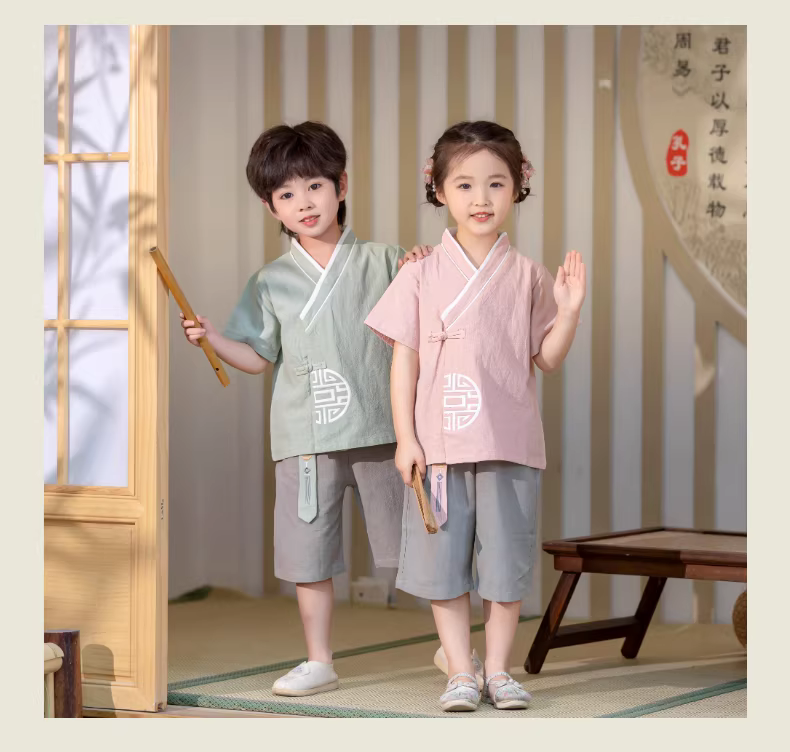 - Bộ quần áo ngắn tay mùa xuân hè Hanfu dành cho bé gái Bộ quần áo biểu diễn ngày lễ hội của trẻ mẫu giáo Trang phục mùa hè phong cách Trung Hoa dành cho bé trai