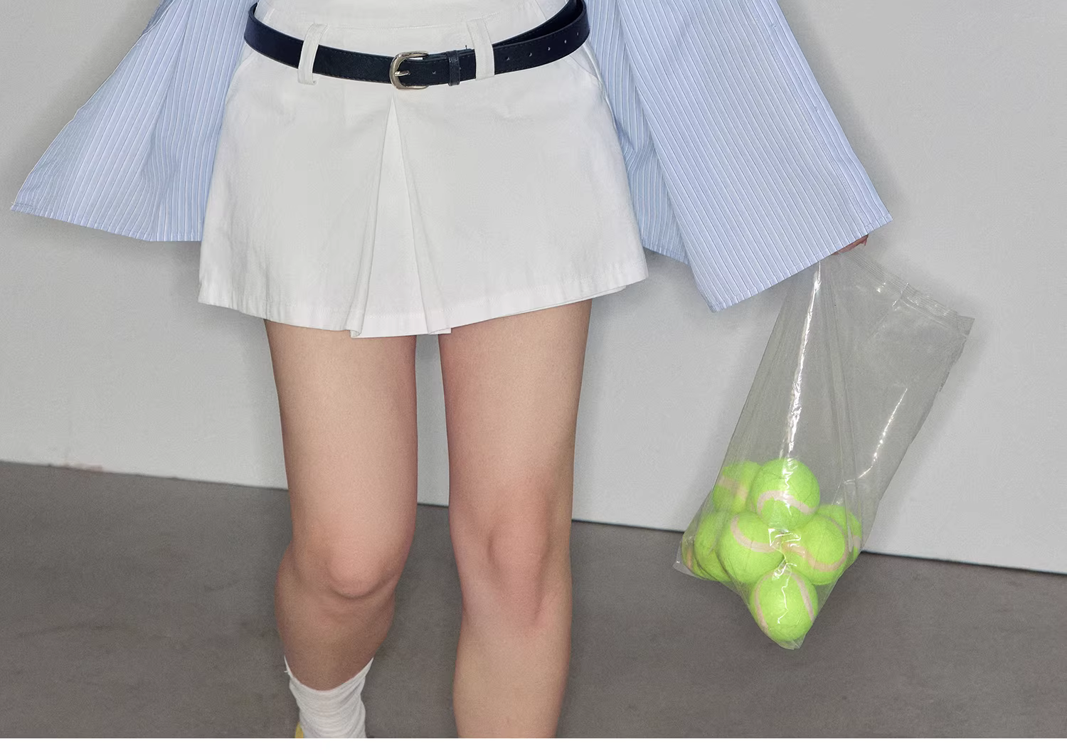 - Bộ quần áo nữ cỡ lớn: áo sơ mi sọc thể thao, năng động, tôn dáng và quần váy trắng cạp cao
