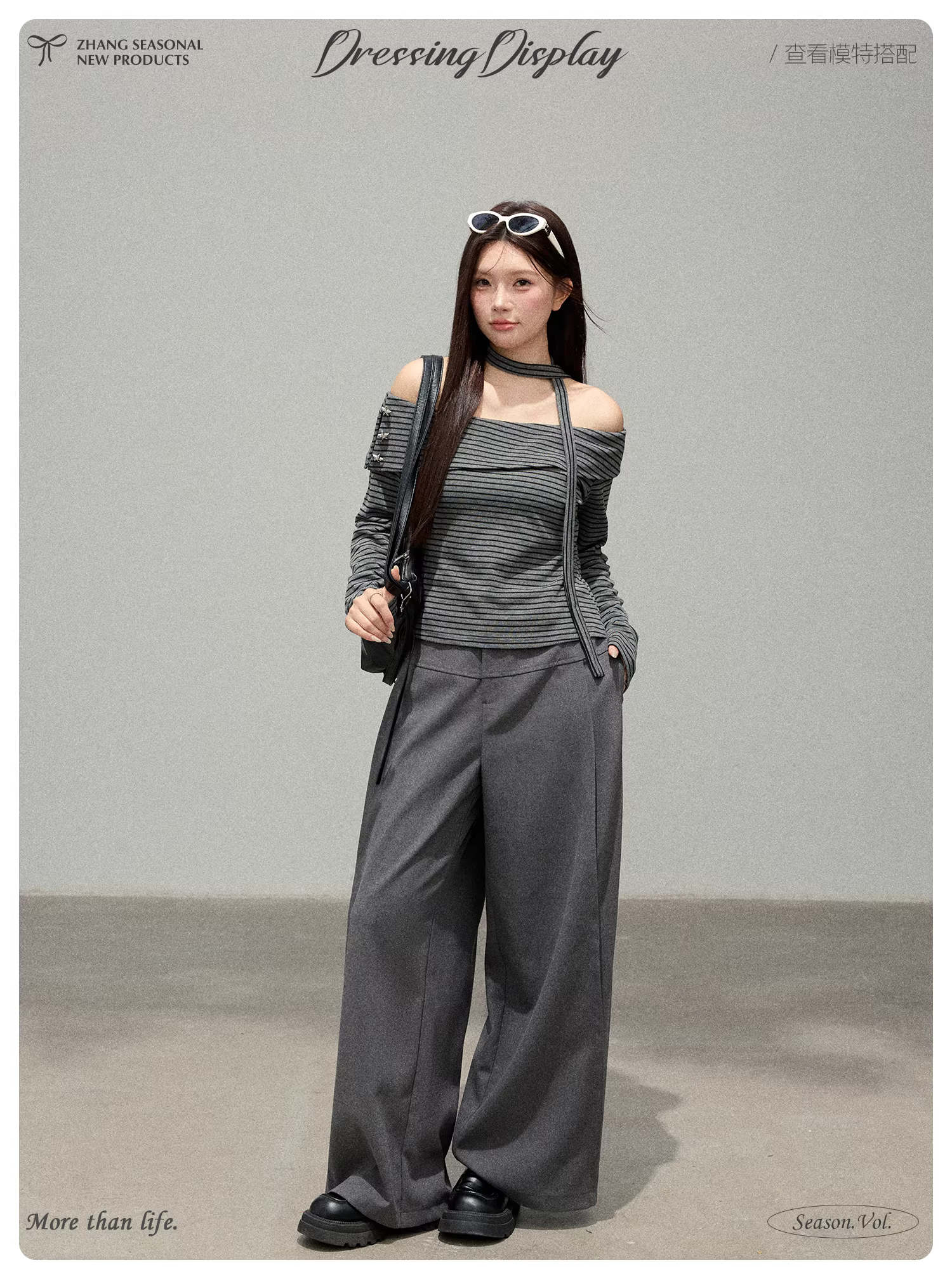 Bộ quần áo nữ cỡ lớn dành cho các cô nàng mũm mĩm, áo lệch vai sọc kẻ tôn dáng với quần ống rộng xếp ly