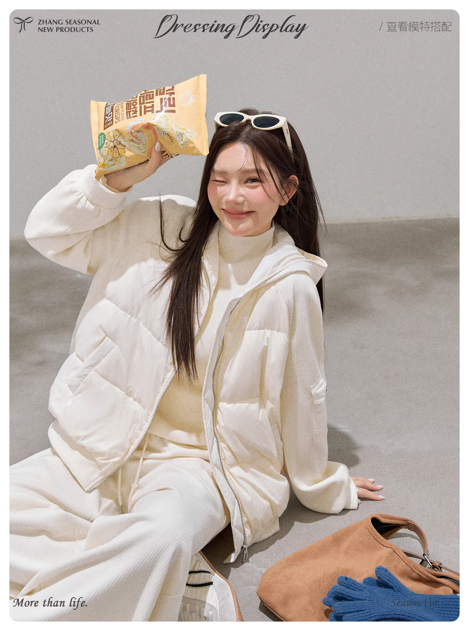 - Bộ quần áo nữ cỡ lớn dành cho người hơi mũm mĩm, trang phục thon gọn, áo khoác phao, áo khoác ấm, quần ống rộng chất liệu dẻo.
