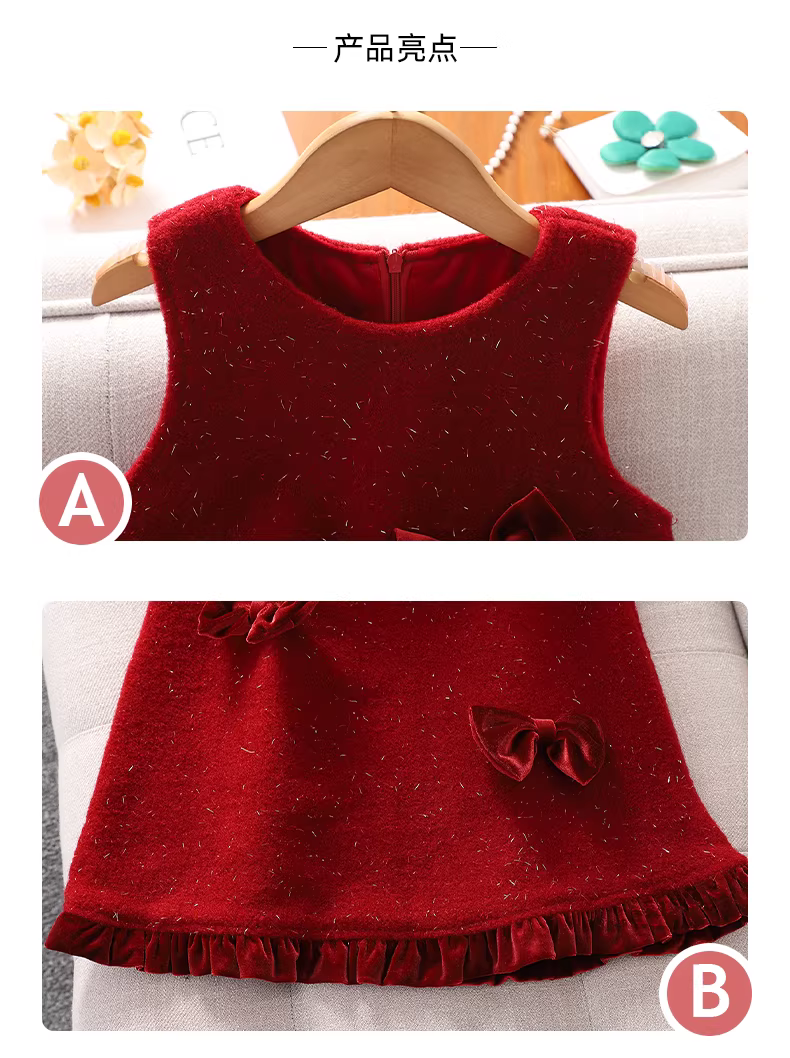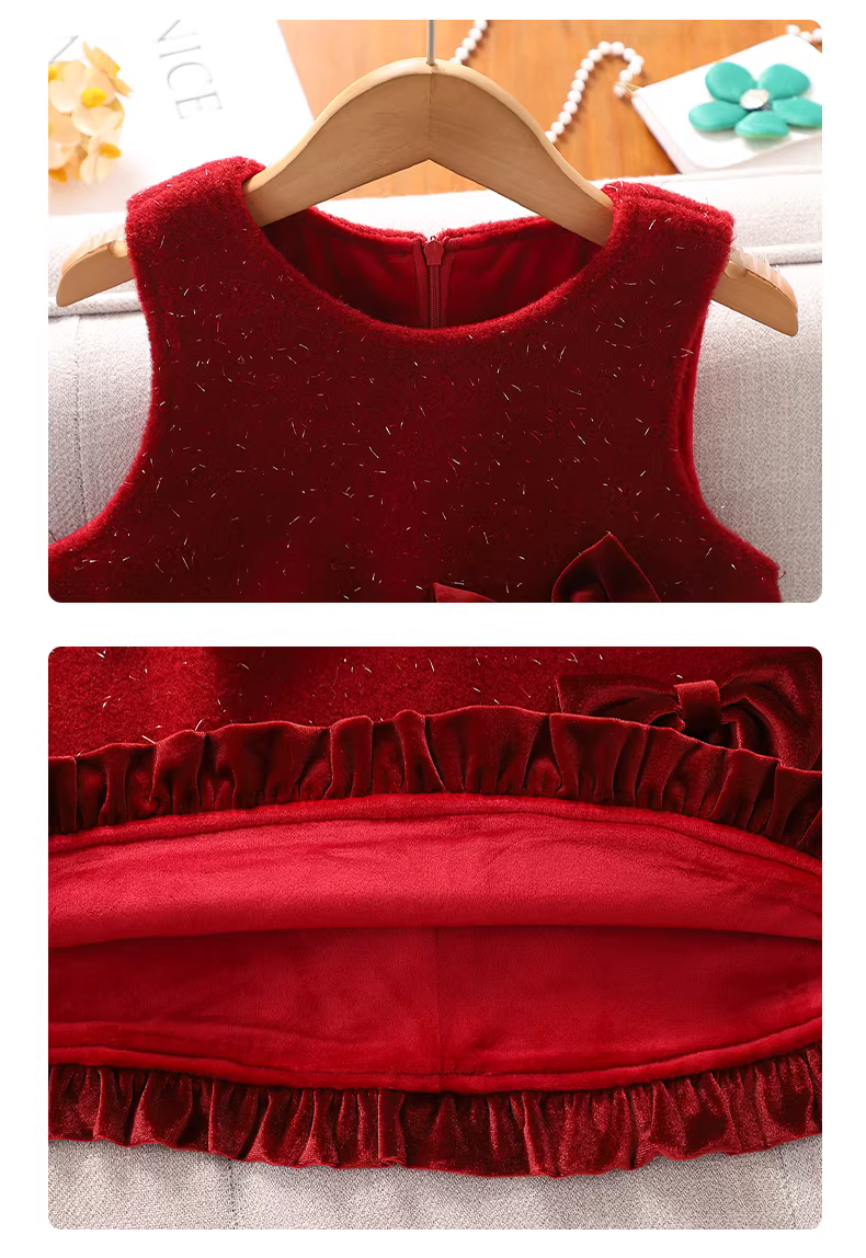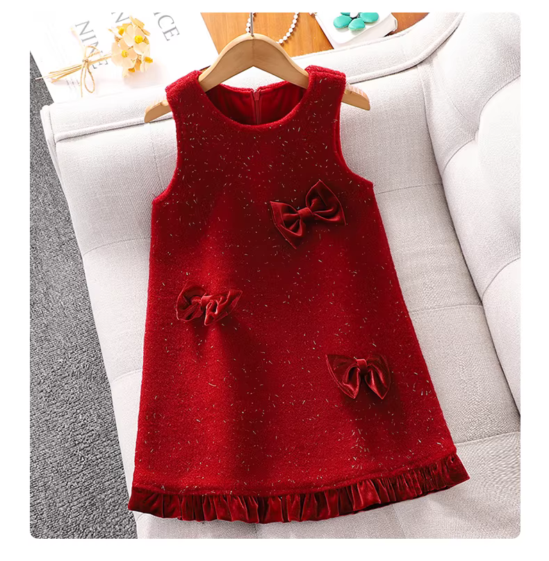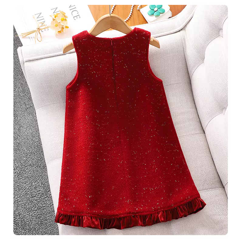 - Bộ quần áo Tết thu đông 2025 cho bé gái lớn, đầm Tết đỏ phong cách Chanel, trang phục mùa đông