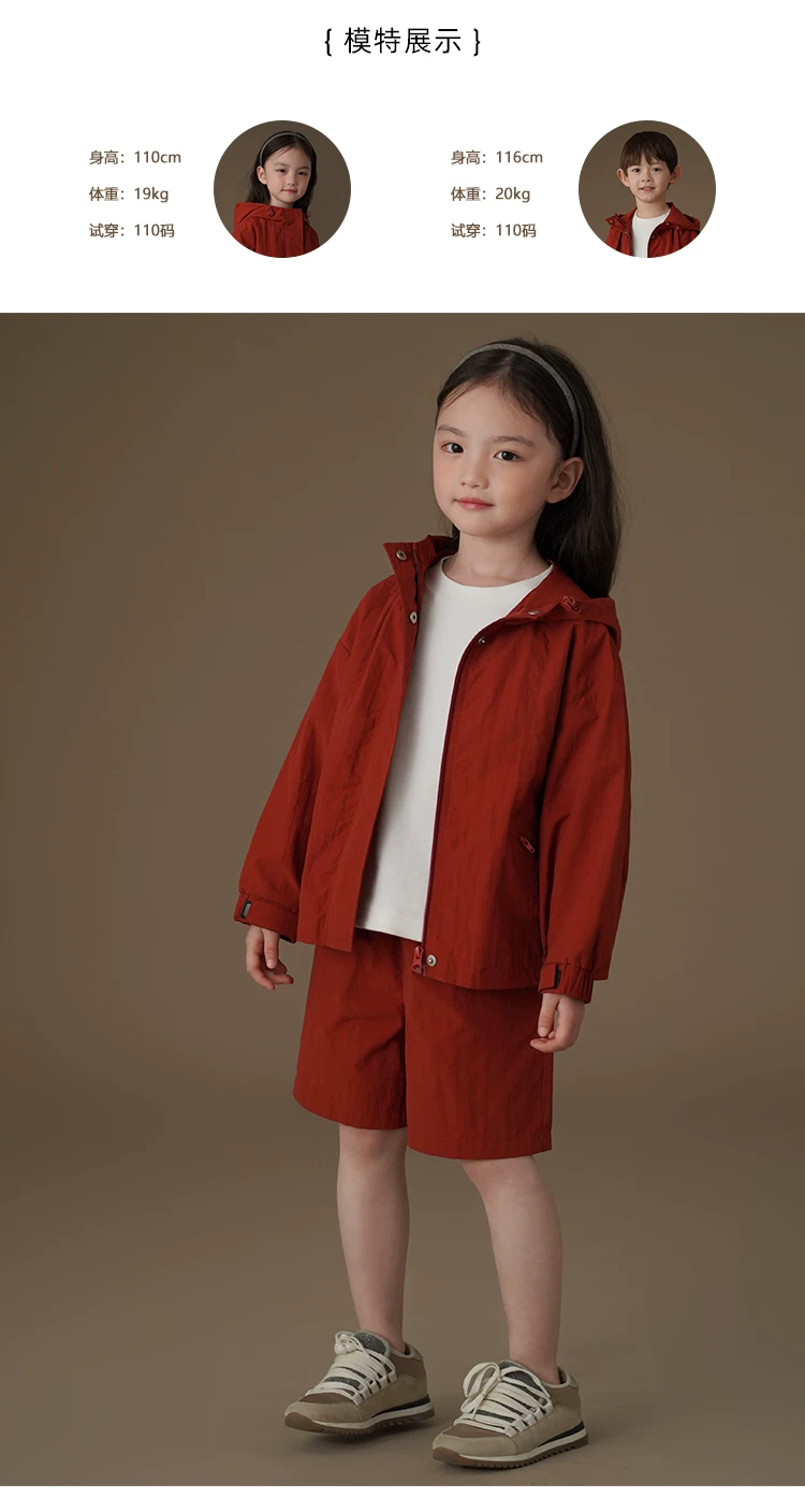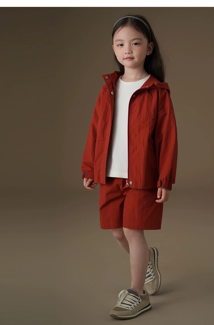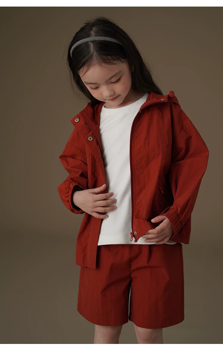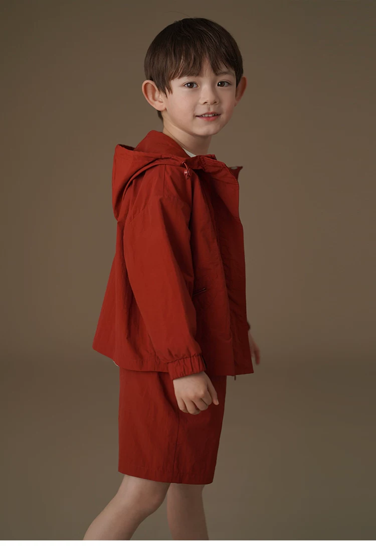 - Bộ quần áo trẻ em: quần short và áo khoác dáng rộng màu đỏ gỉ dành cho bé trai và bé gái, nhanh khô, mẫu mới xuân hè 25.
