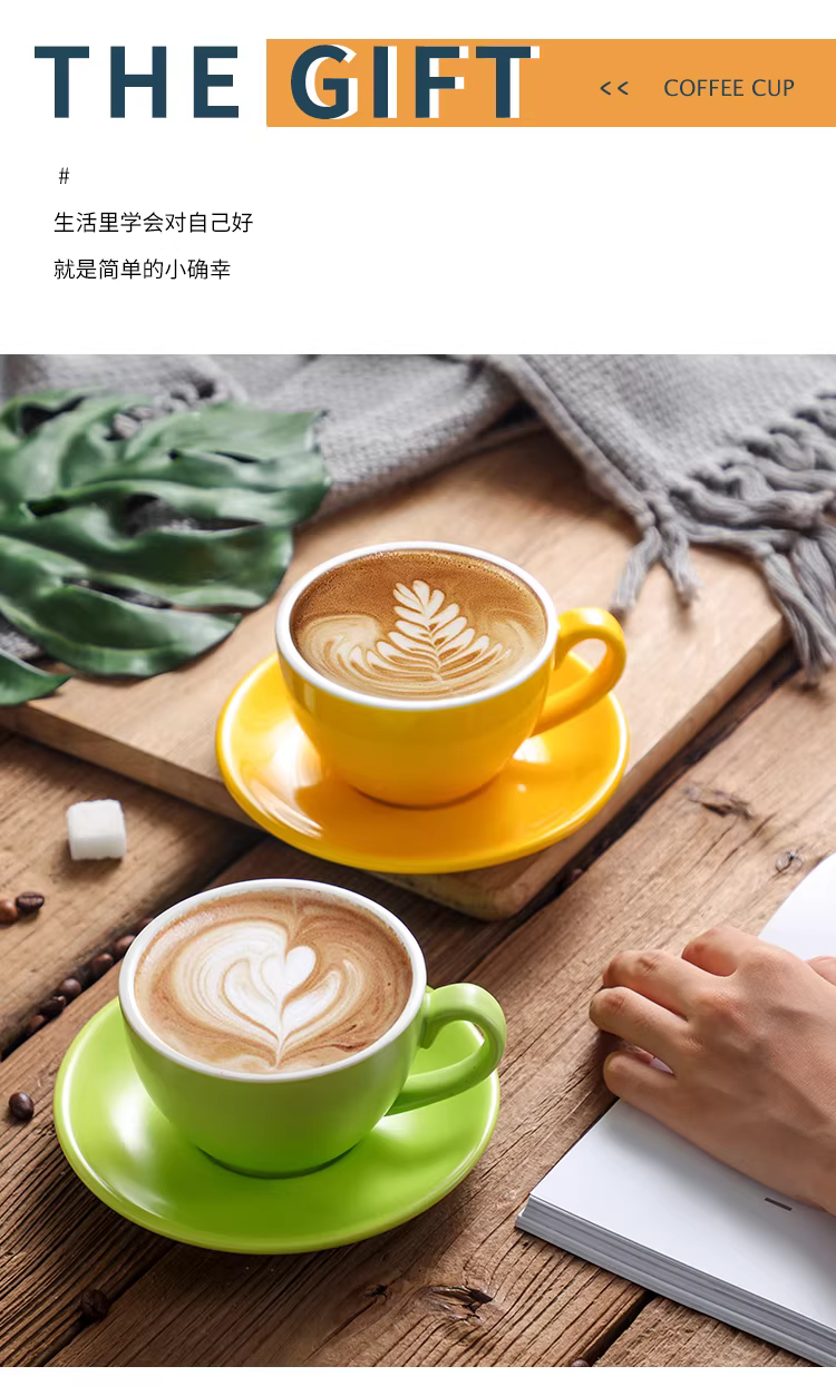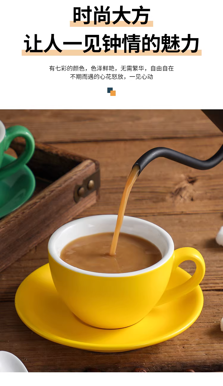 - Bộ tách cà phê gốm sứ miệng rộng dày dặn, bộ cà phê đơn giản nhiều màu sắc, phong cách châu Âu sáng tạo, bộ đầy đủ 220ml