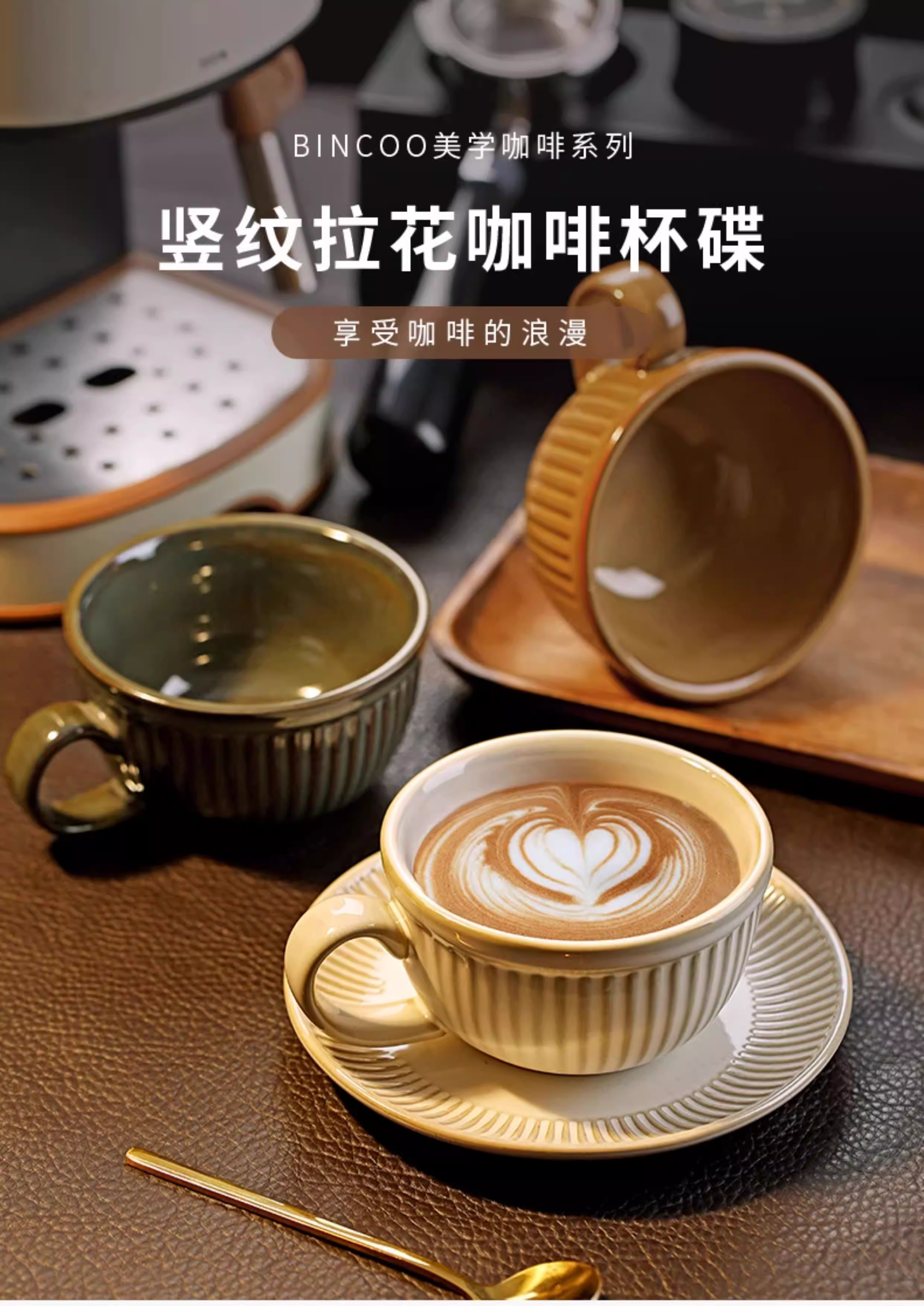Bộ tách trà cà phê gốm sứ Bincoo phong cách Nhật Bản cổ điển, tách cà phê nghệ thuật latte sáng tạo, tách latte, cốc pha cà phê thủ công