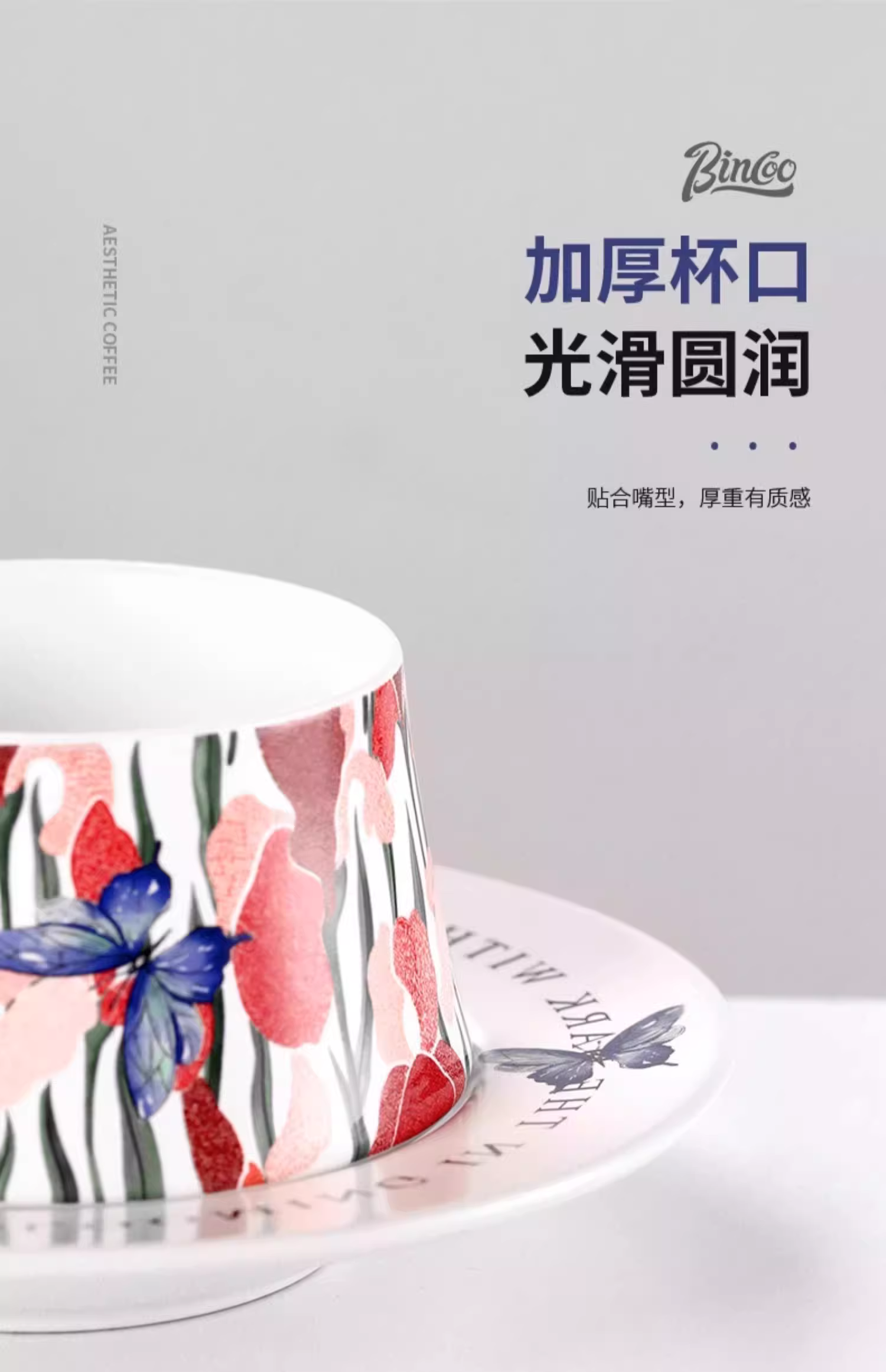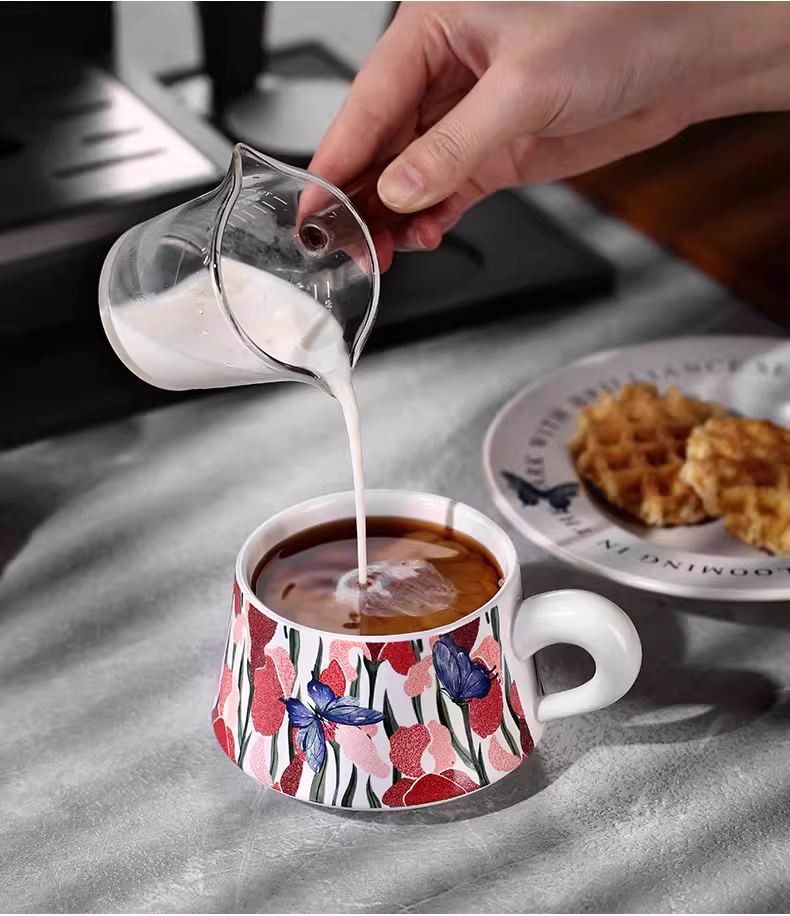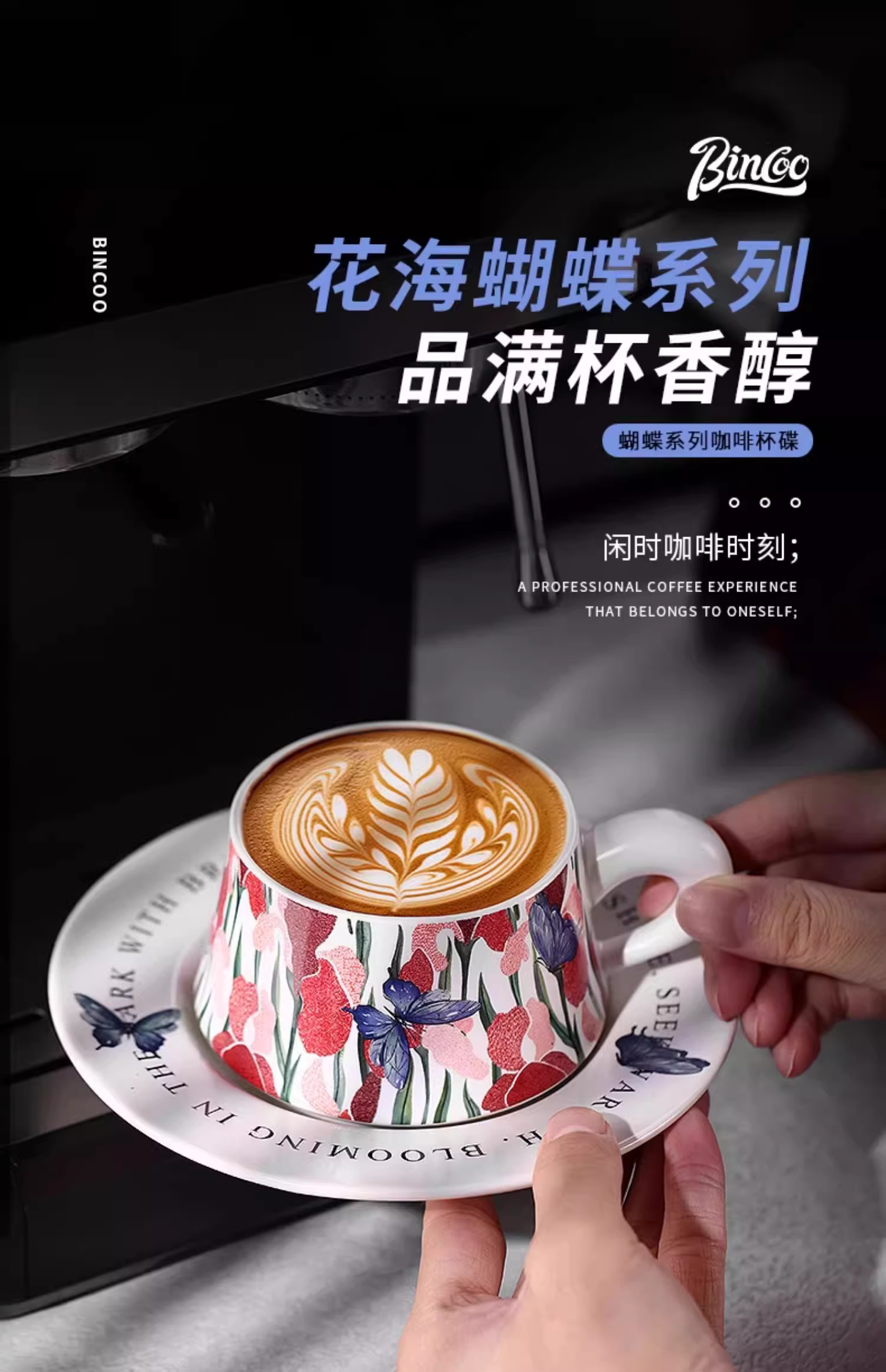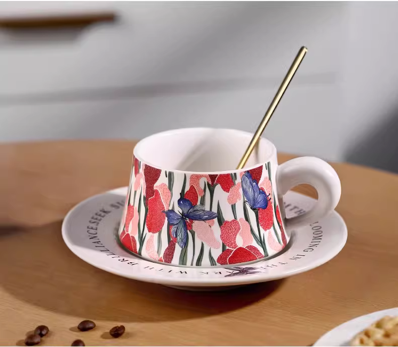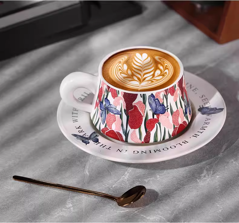 Bộ tách trà cà phê sứ Bincoo hình con bướm, chuyên dụng vẽ latte, kiểu Ý sáng tạo, cao cấp, tinh tế