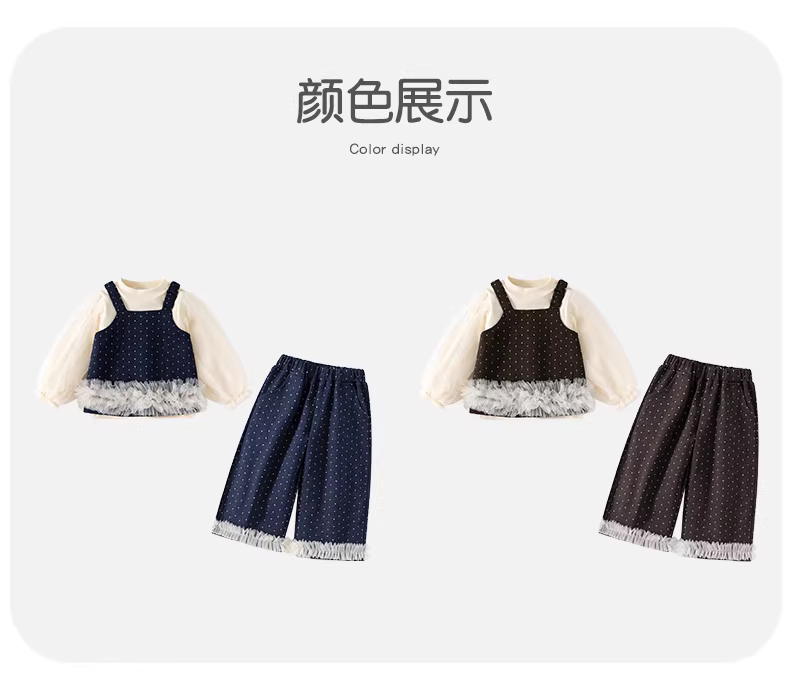 - Bộ trang phục bé gái thu đông 2025, thời trang trẻ em mới, quần áo trẻ nhỏ hợp xu hướng, bộ ba món chất liệu denim cho bé, thời trang xuân thu