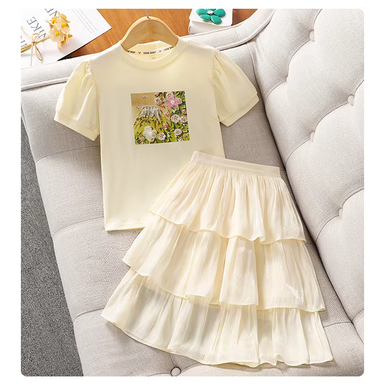 - Bộ trang phục hè 2025 cho bé gái, quần áo trẻ em mới, bộ hai mảnh váy ngắn tay hè cho bé gái, bộ đồ váy cho bé lớn