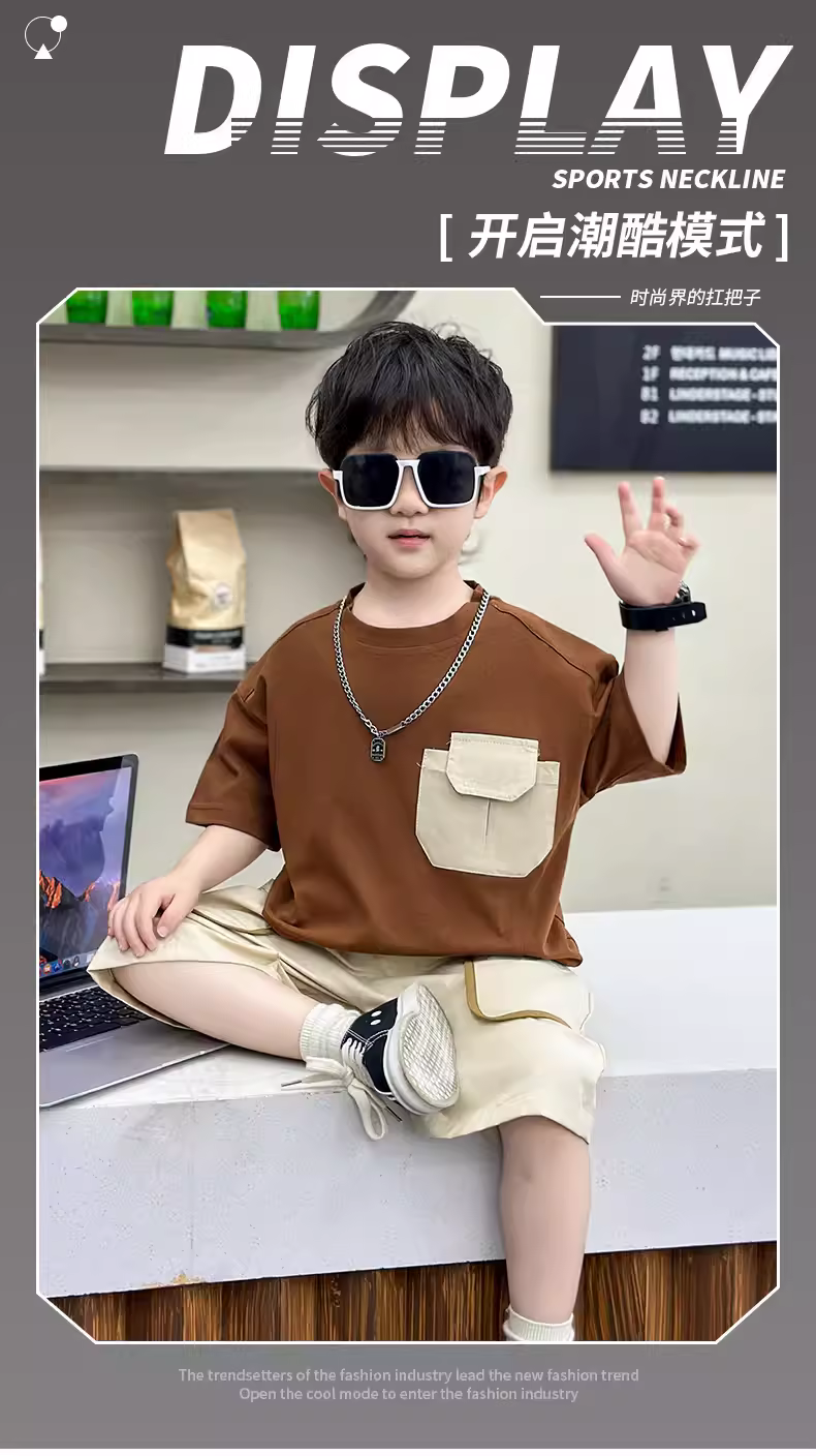 - Bộ trang phục hè 2025 cho bé trai, quần áo trẻ em thời trang phong cách đường phố, bộ hai mảnh thời thượng cho bé trai