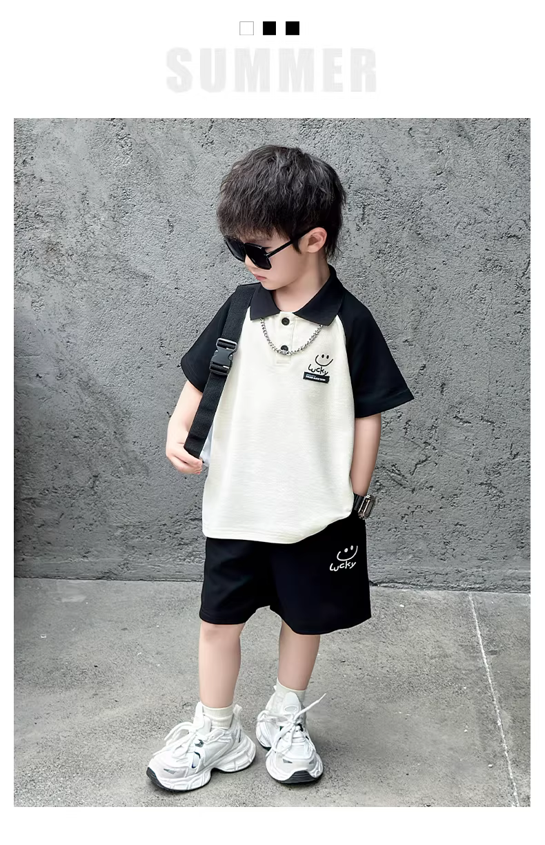 - Bộ trang phục hè cho bé trai 2025, bộ hai mảnh áo polo hoạt hình mùa hè mới cho trẻ em, quần áo hè mỏng cho bé