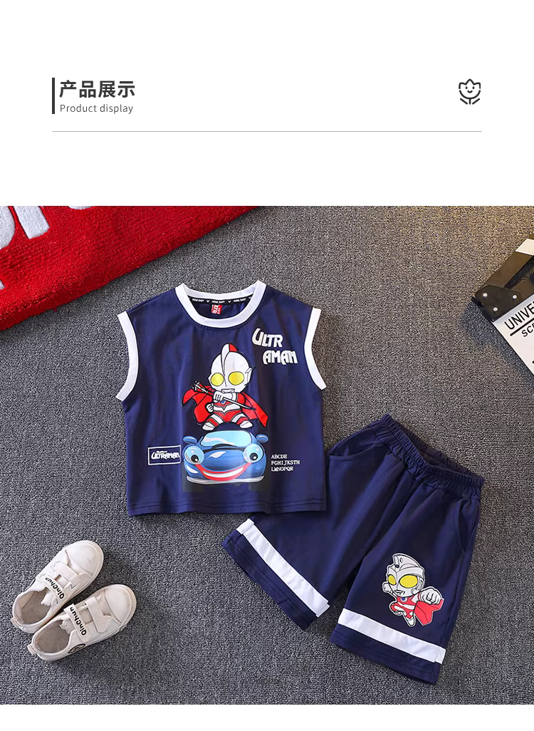 - Bộ trang phục hè cho bé trai 2025, bộ vest và quần đùi hai mảnh mới, chất liệu mỏng, thời trang và sành điệu cho bé trai