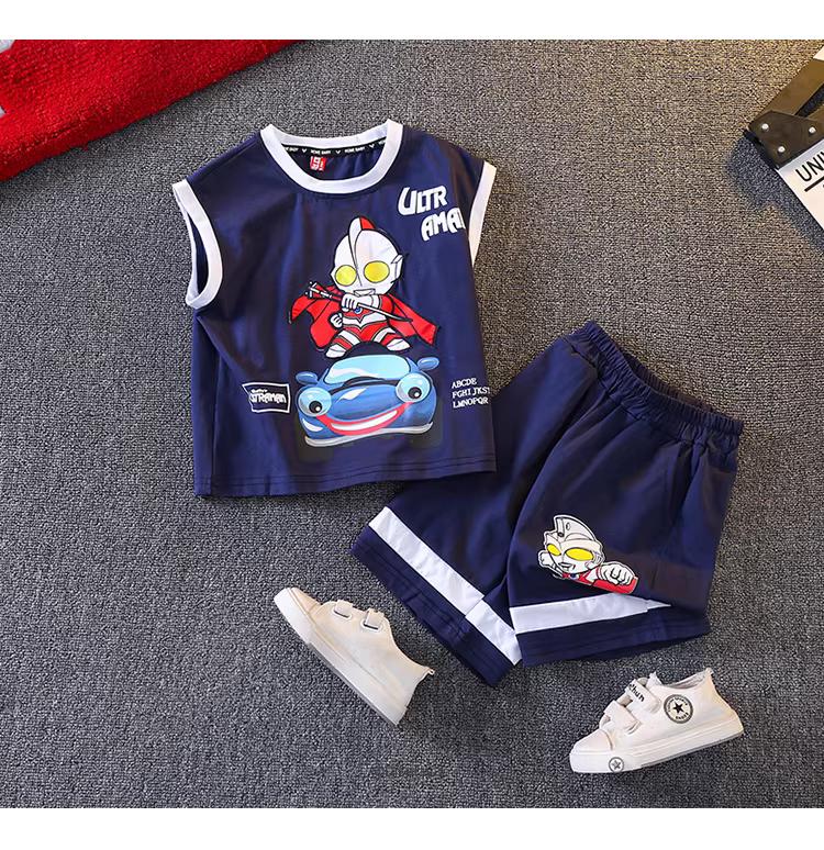 Bộ trang phục hè cho bé trai 2025, bộ vest và quần đùi hai mảnh mới, chất liệu mỏng, thời trang và sành điệu cho bé trai