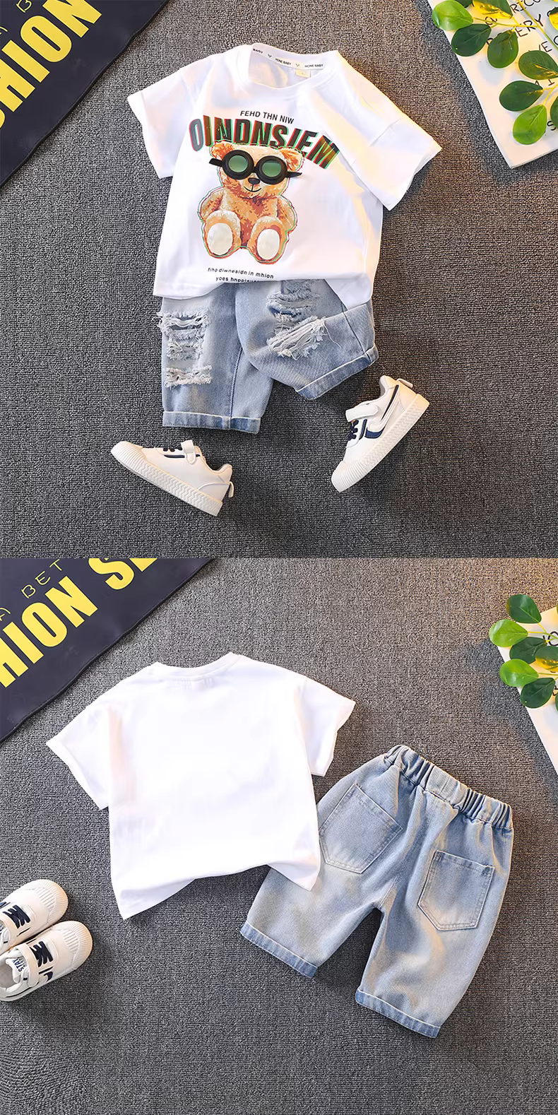 - Bộ trang phục mùa hè cho bé trai 2025, thời trang mới, phong cách đường phố hot trend mạng xã hội, áo thun ngắn tay cho bé trai