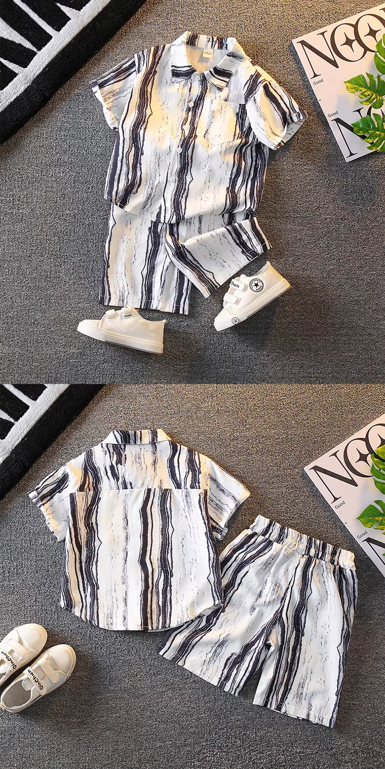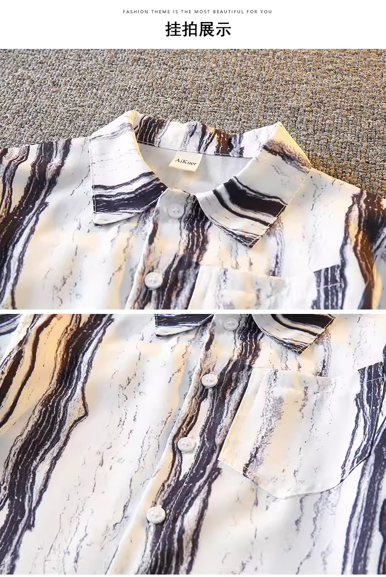 - Bộ trang phục mùa hè cho bé trai 25 mẫu mới thời trang trẻ em phong cách Hàn Quốc, áo sơ mi bé trai hai mảnh, kiểu dáng năng động