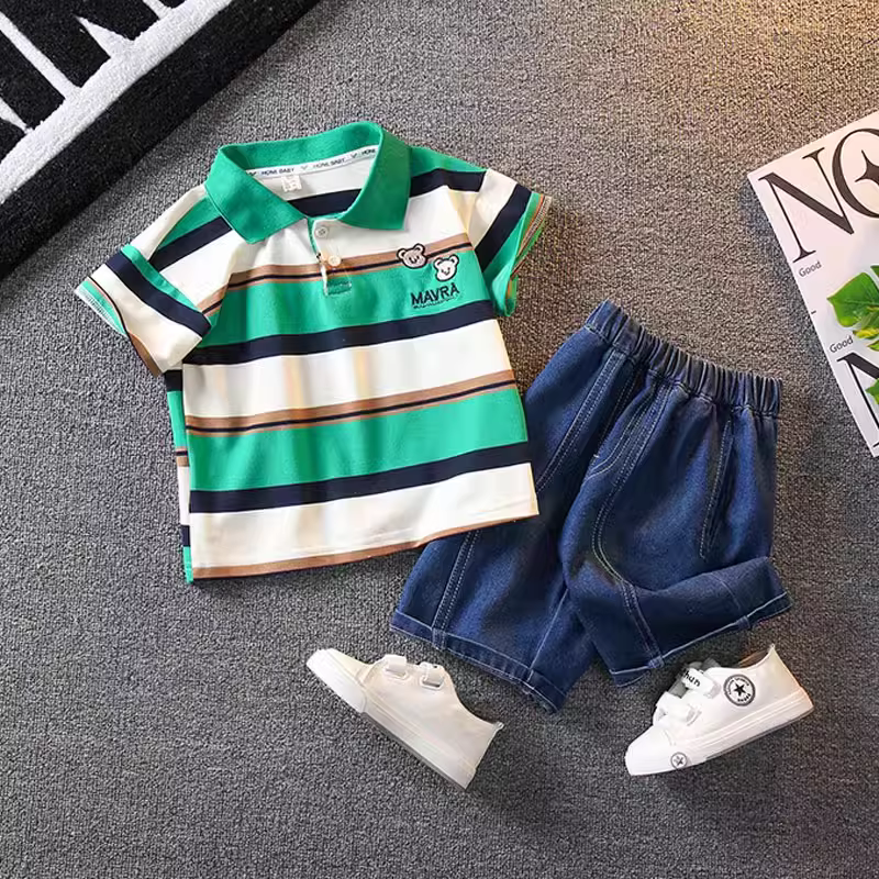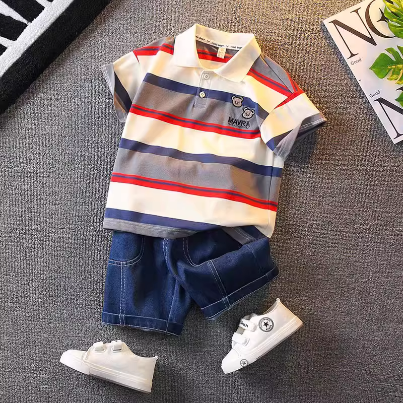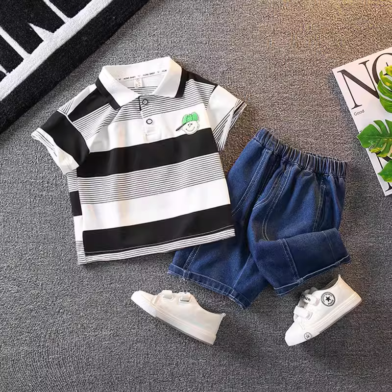 - Bộ trang phục mùa hè ngắn tay cho bé trai 2025, thời trang mới, quần áo mùa hè trẻ em, phong cách trẻ trung, thời trang đường phố, quần áo trẻ em