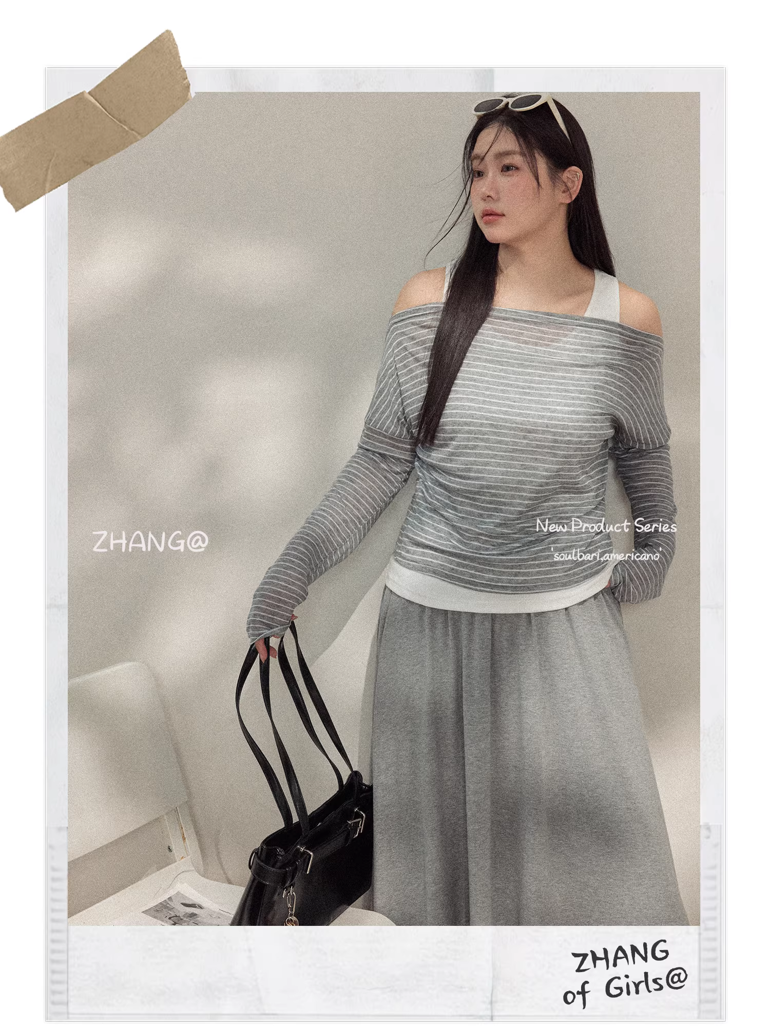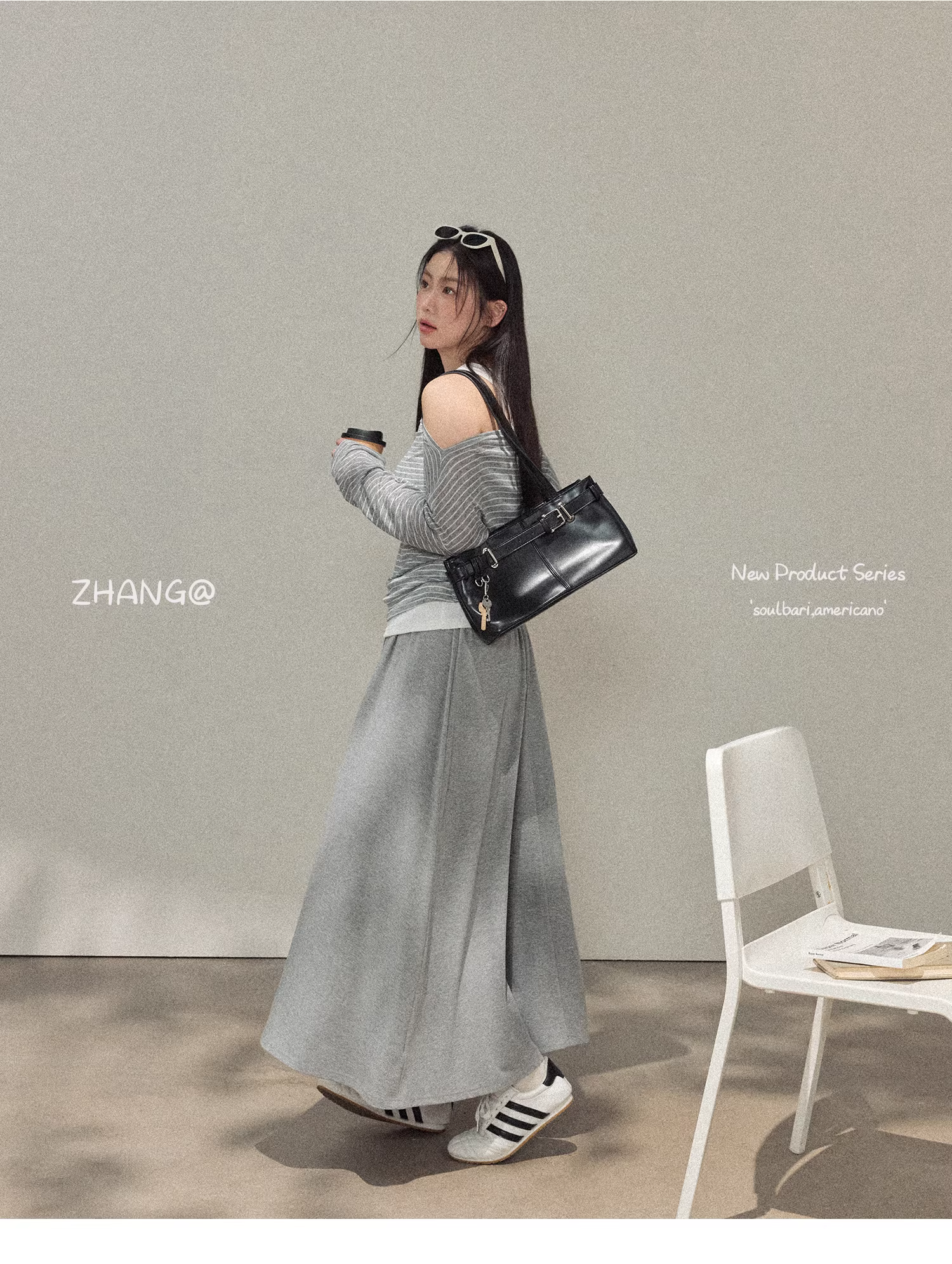 - Bộ trang phục nữ cỡ lớn dành cho người lớn, áo kiểu Hàn Quốc đơn giản, giản dị, sọc kẻ và chân váy màu xám, thiết kế tôn dáng.