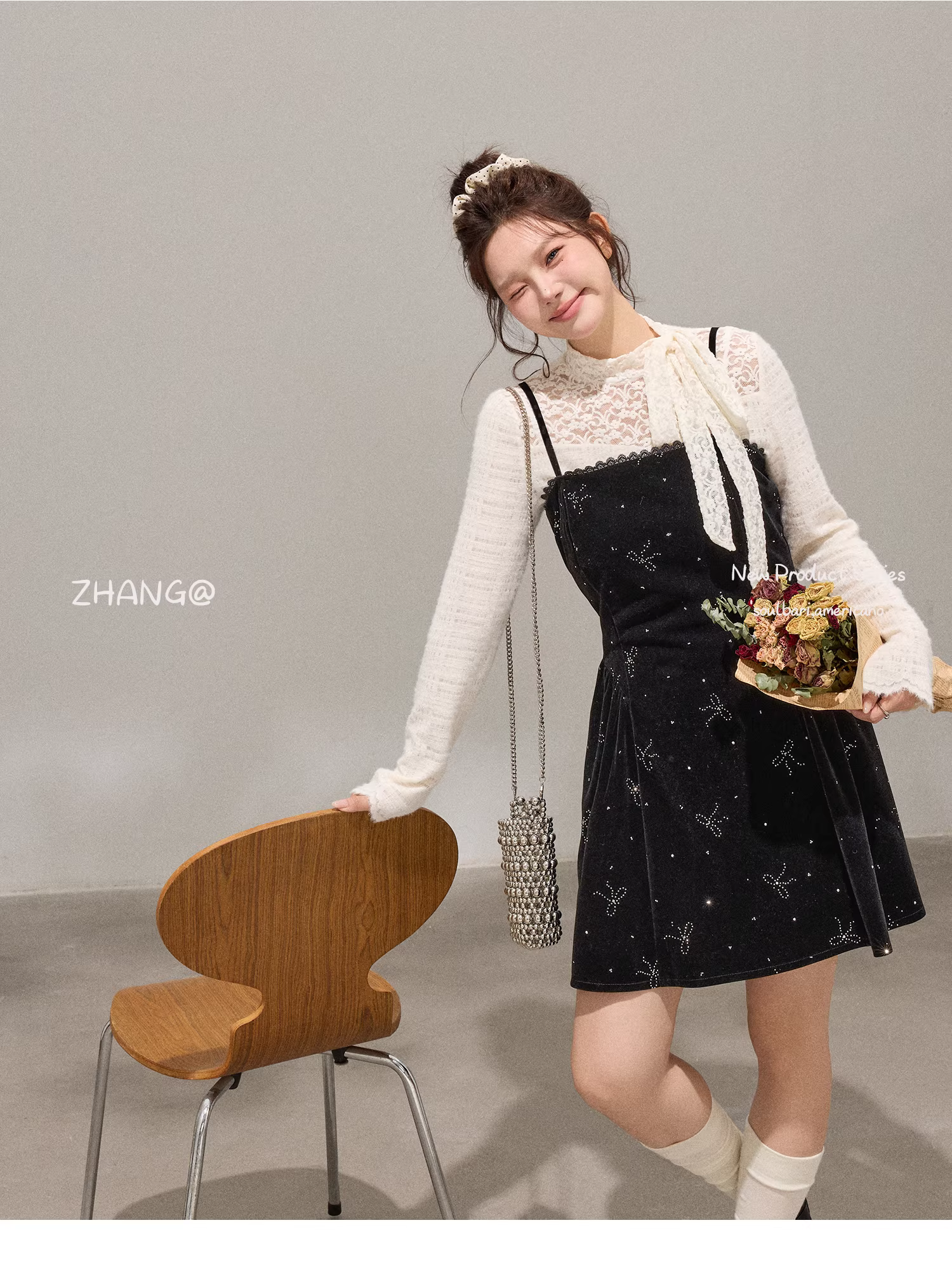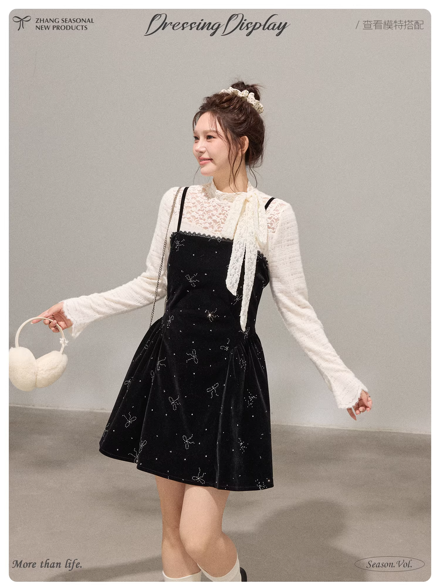 - Bộ trang phục nữ cỡ lớn dành cho người lớn, kiểu Hàn Quốc, gồm áo lót ren thon gọn và váy camisole nhung.