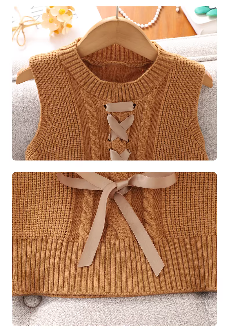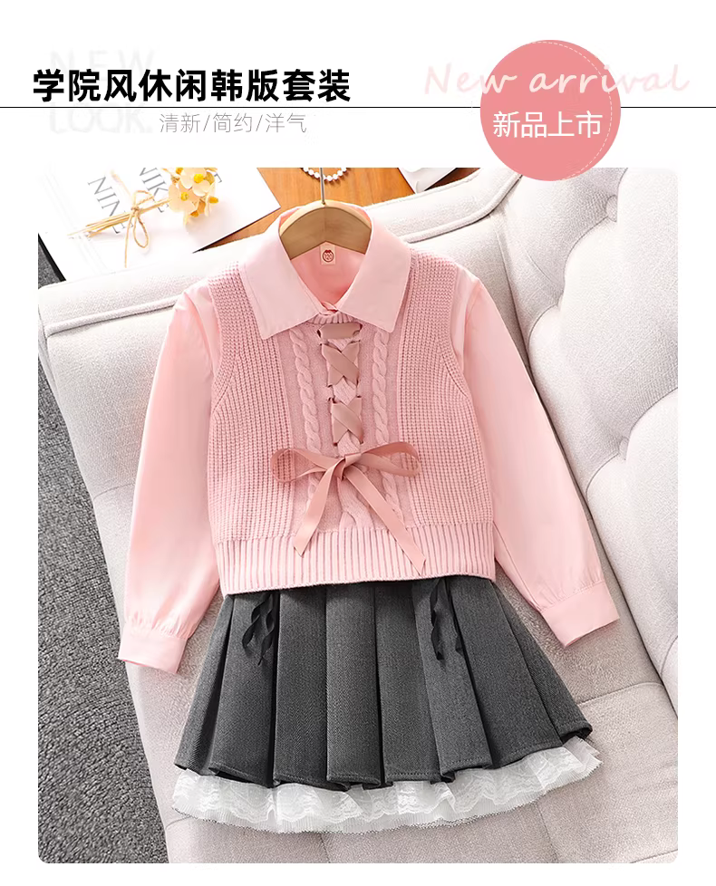 - Bộ trang phục nữ sinh phong cách JK Xuân Thu 2025, áo gile, chân váy xếp ly, bộ ba món mới