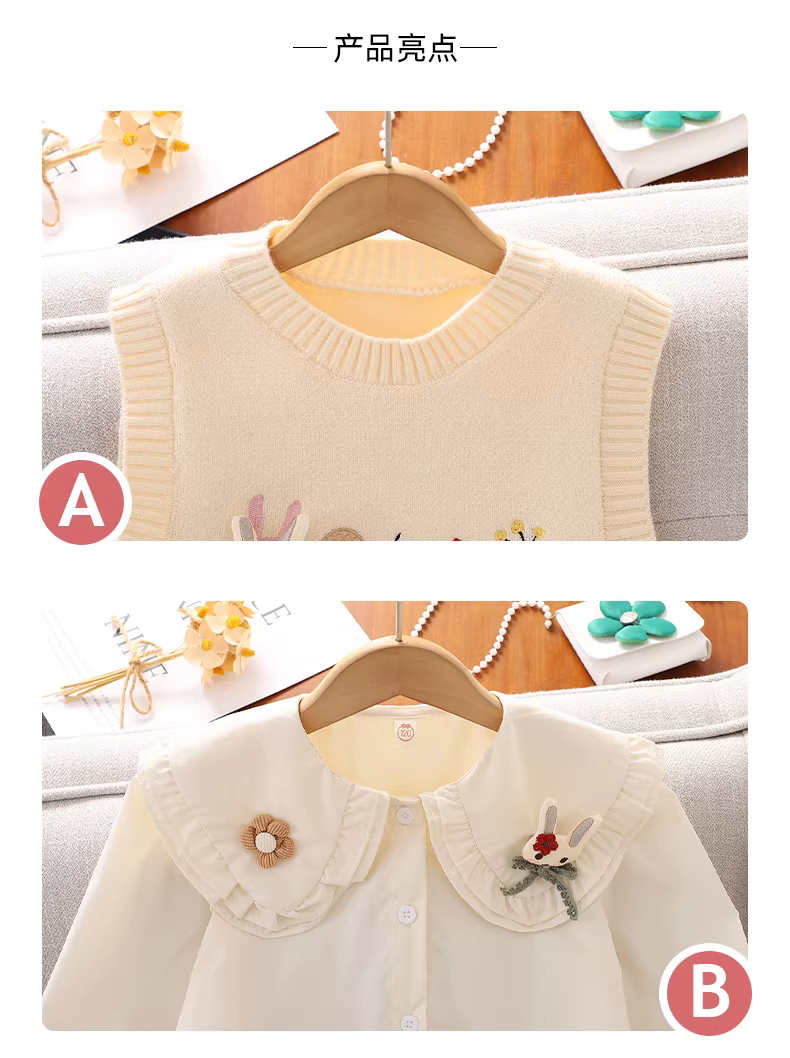 - Bộ váy liền thân xuân thu cho bé gái 2025, quần áo trẻ em mới, áo gile, váy xếp ly ba món