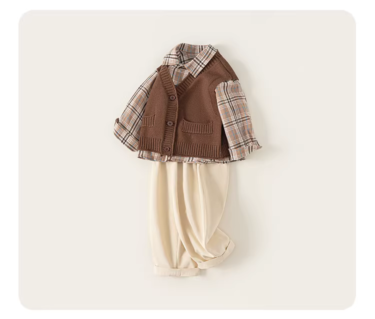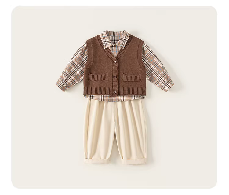 - Bộ vest bé trai INSbobo thu đông, bộ ba món, mẫu mới xuân thu 2025, quần áo trẻ em thời trang