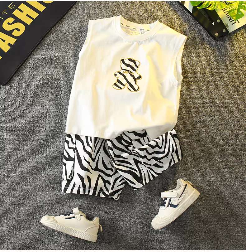 - Bộ vest hè bé trai kiểu mới 2025, quần áo trẻ em không tay thời trang, mát mẻ và sành điệu