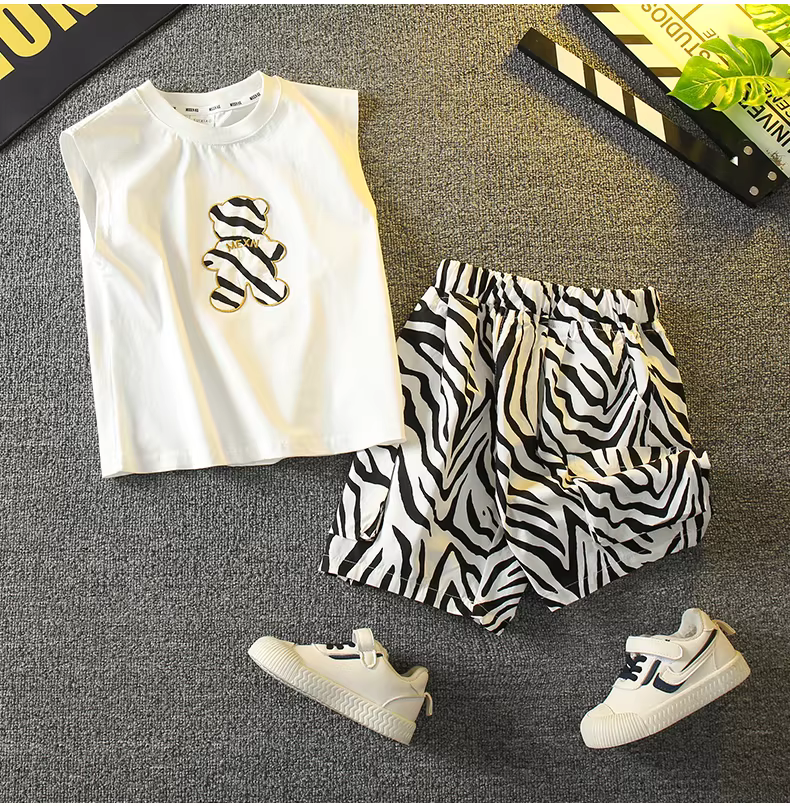 Bộ vest hè bé trai kiểu mới 2025, quần áo trẻ em không tay thời trang, mát mẻ và sành điệu