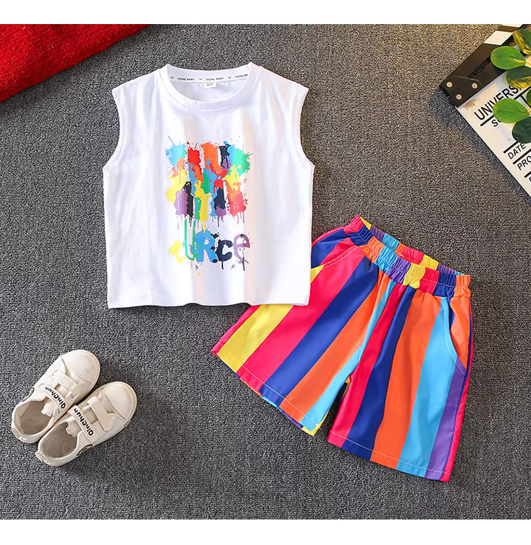 - Bộ vest hè cho bé trai 2025, quần áo hè thời trang mới cho bé trai, bộ hai mảnh không tay, quần đùi trẻ em, kiểu dáng hợp xu hướng