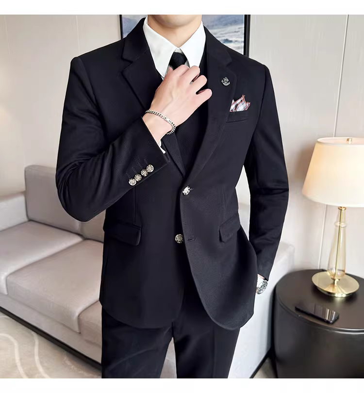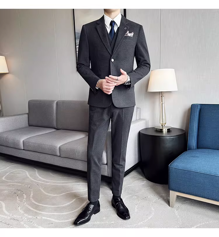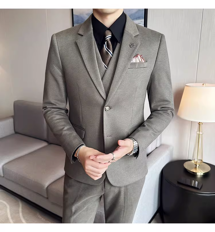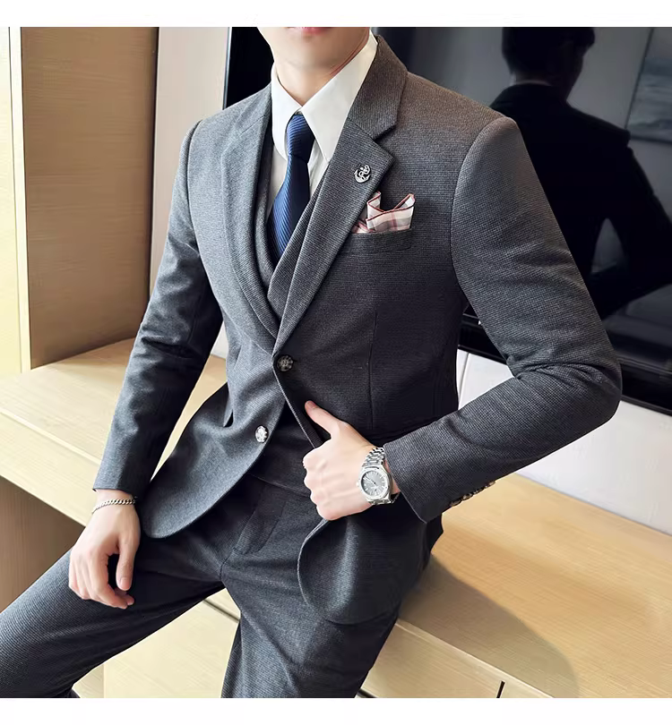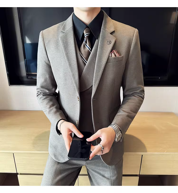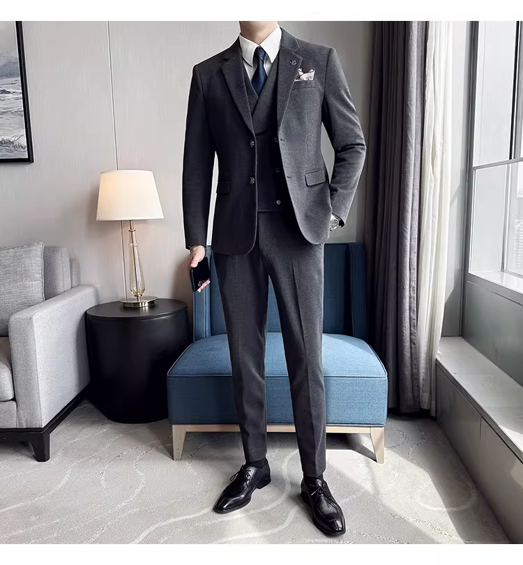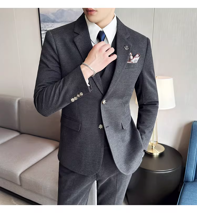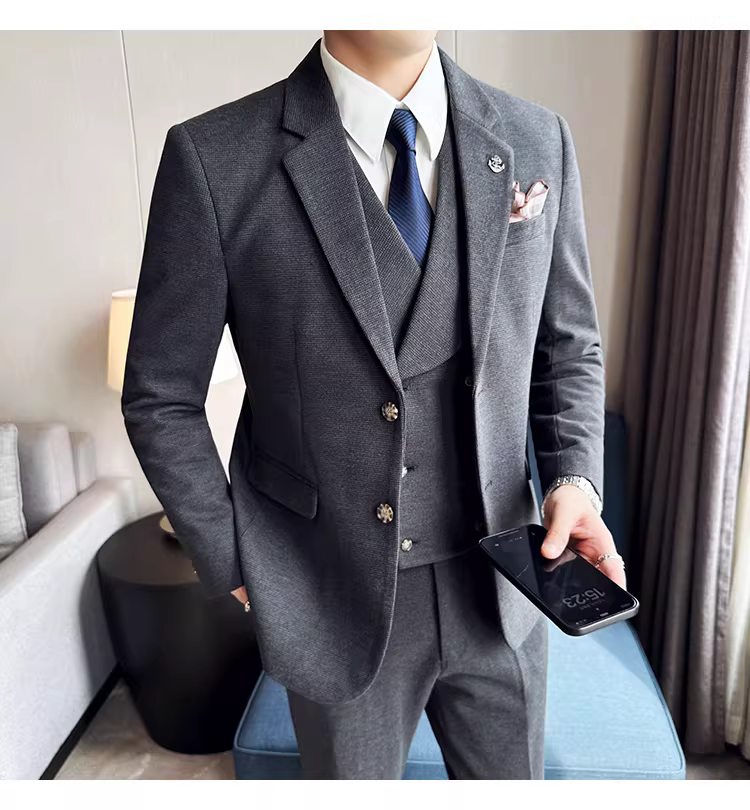 Bộ vest len nam mùa thu đông dày dặn, kiểu dáng lịch lãm, ôm dáng, cao cấp, thích hợp cho chú rể, đám cưới.
