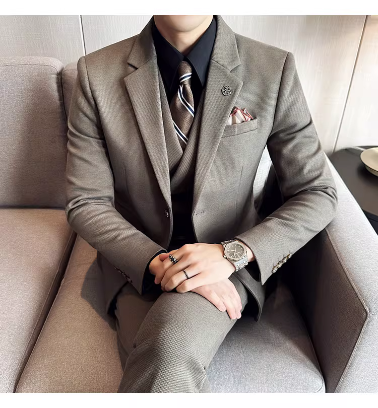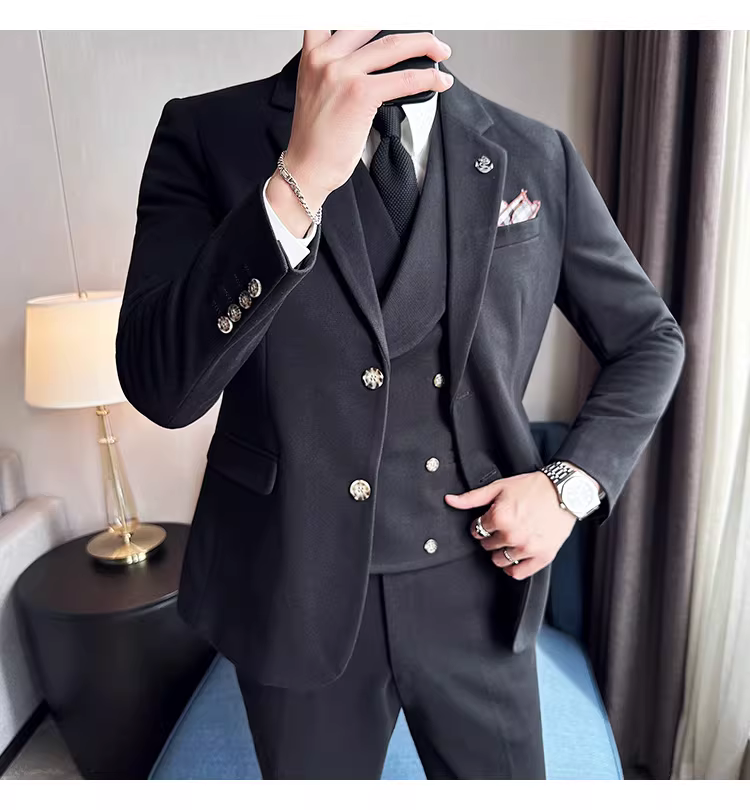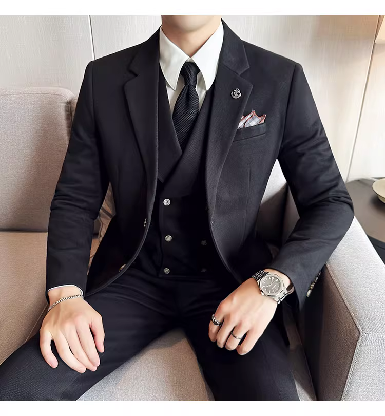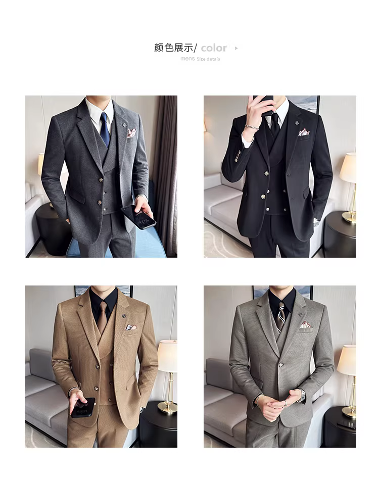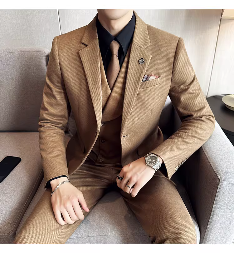 - Bộ vest len nam mùa thu đông dày dặn, kiểu dáng lịch lãm, ôm dáng, cao cấp, thích hợp cho chú rể, đám cưới.
