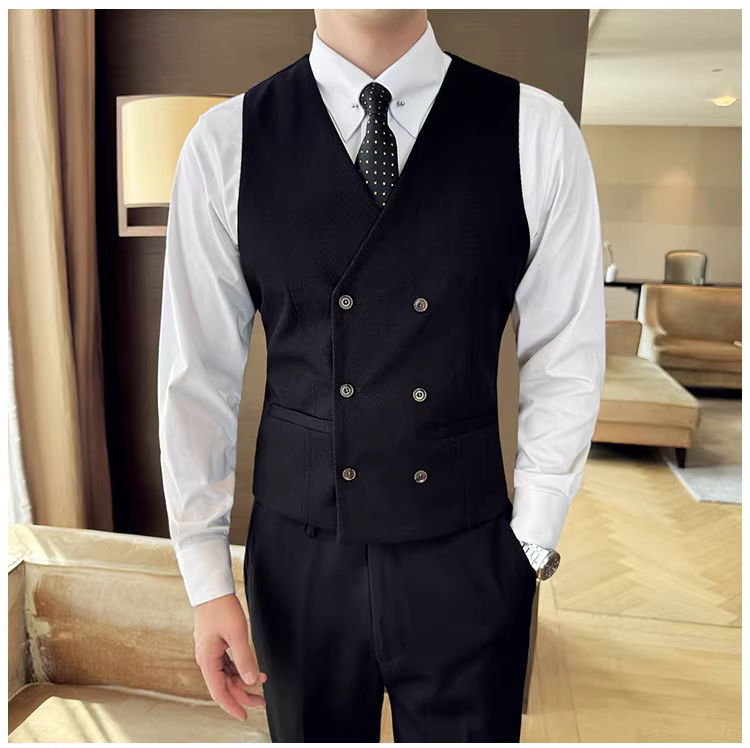 - Bộ vest nam ba mảnh kẻ sọc chéo, kiểu dáng lịch lãm, ôm dáng, thời trang, thích hợp cho đám cưới, tiệc chiêu đãi, hoặc làm trang phục phù rể.