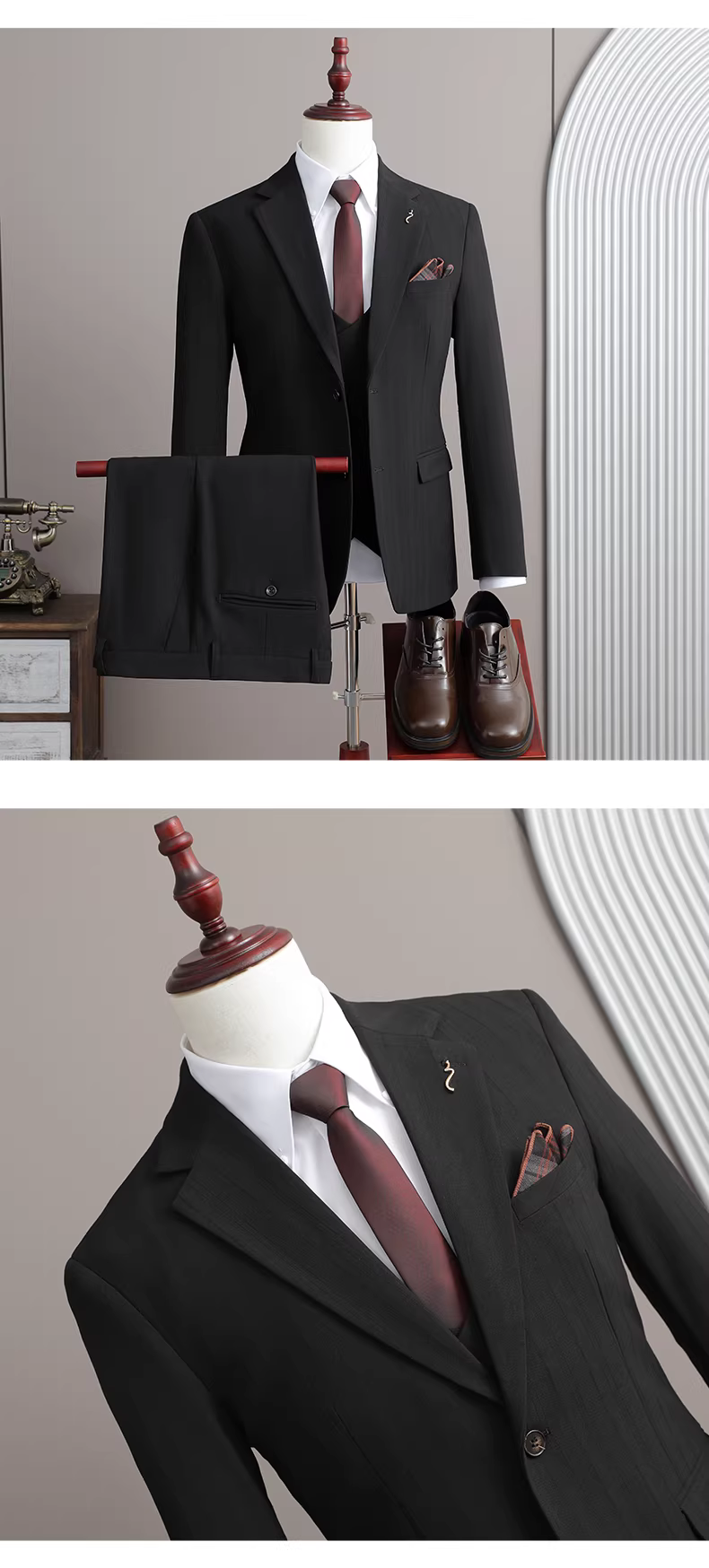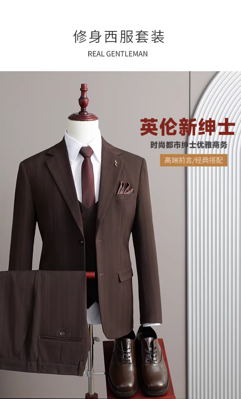 - Bộ vest nam ba món mùa thu 2025 phong cách Anh, vest công sở