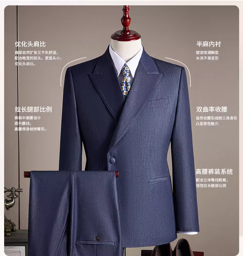 Bộ vest nam cao cấp chất liệu len Tencel, chất lượng cao, phong cách kinh doanh lịch lãm, đa năng, ôm dáng, không nhăn.