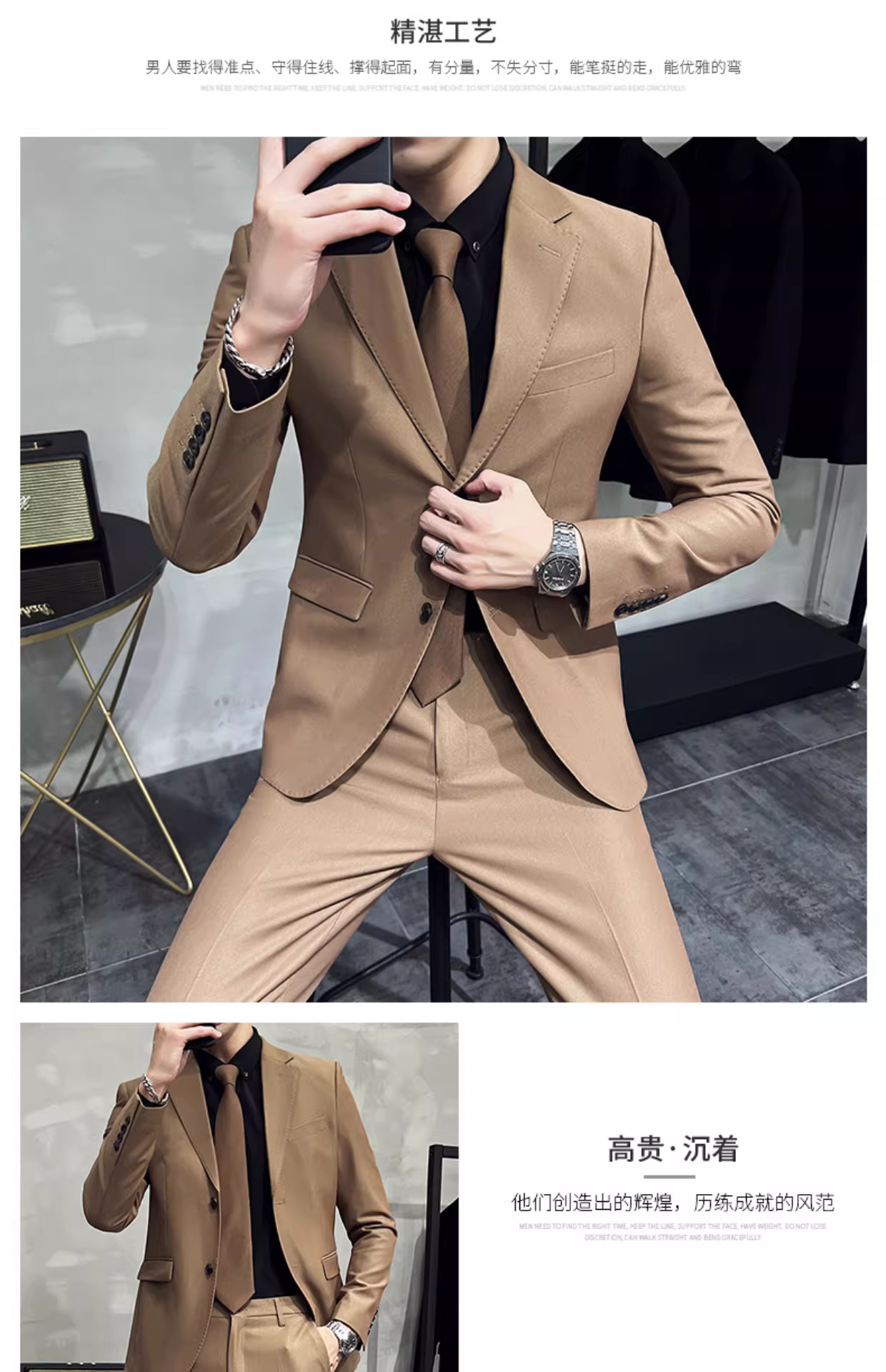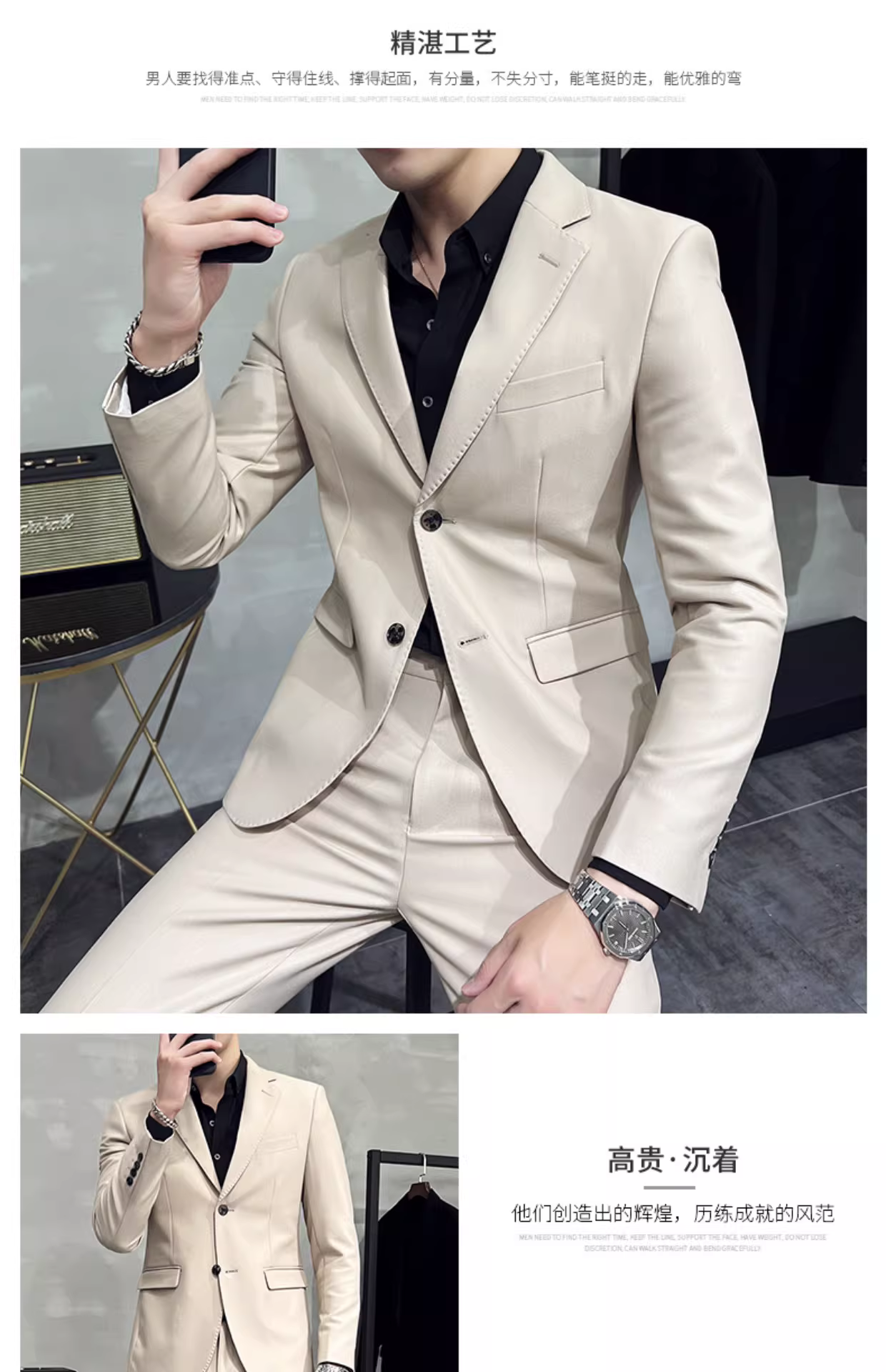 - Bộ vest nam cao cấp xuân 2024 kiểu Anh phiên bản Hàn Quốc thời thượng, dáng ôm, lịch lãm, phong cách doanh nhân.