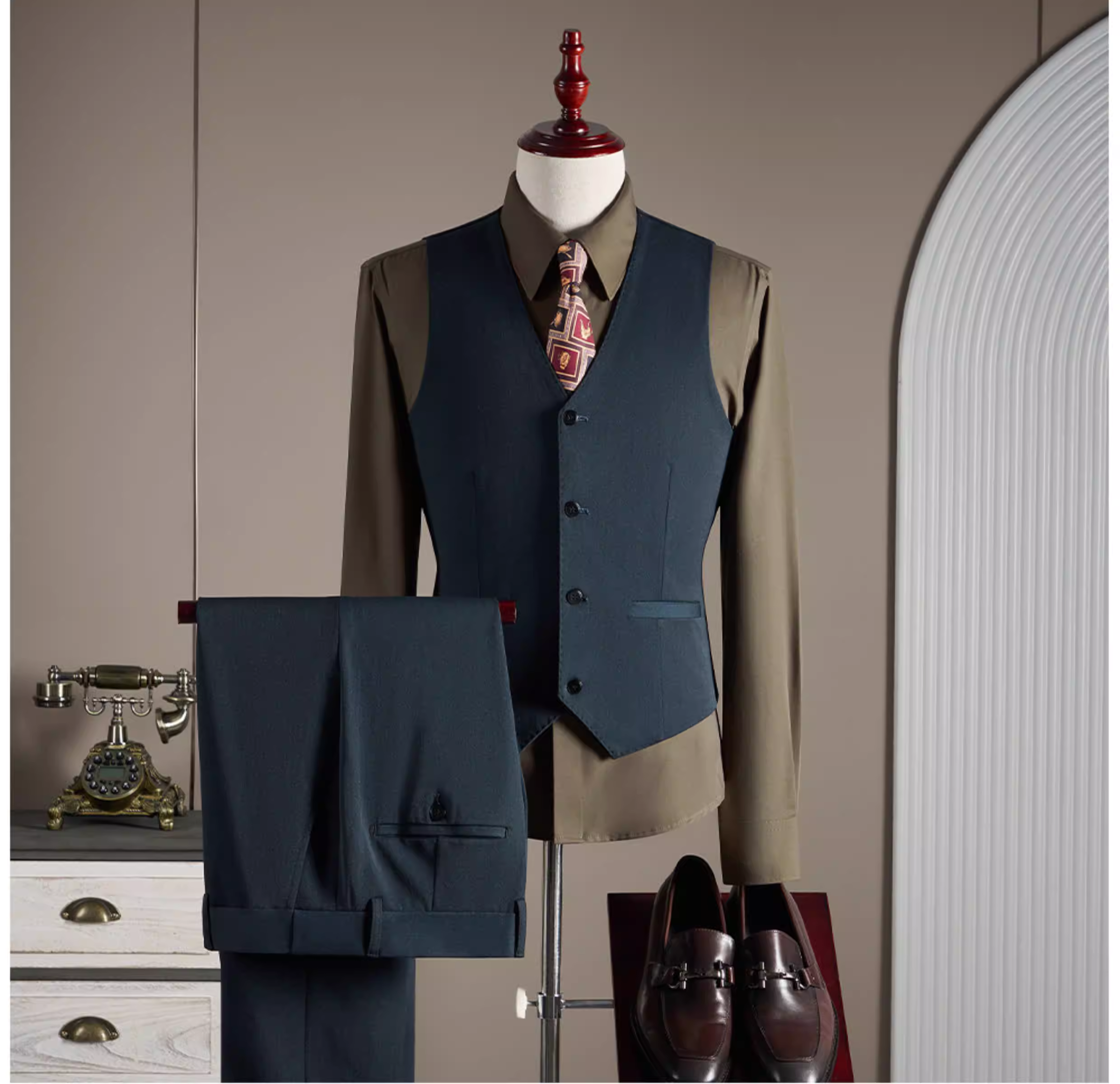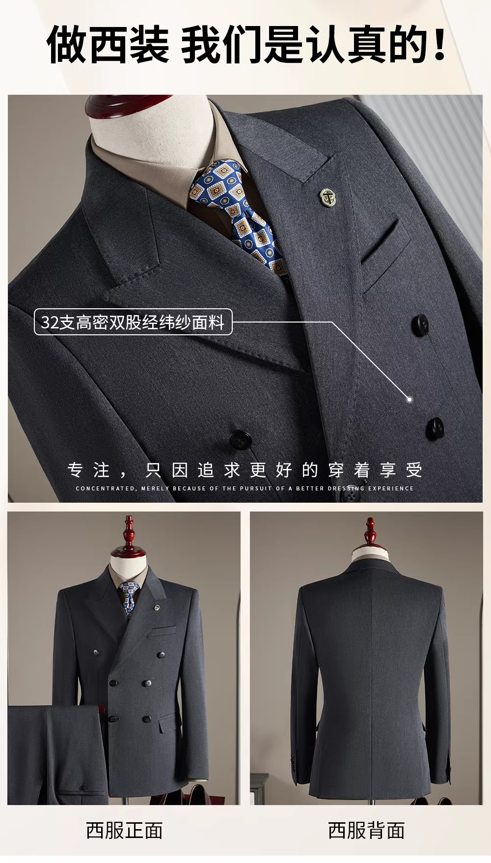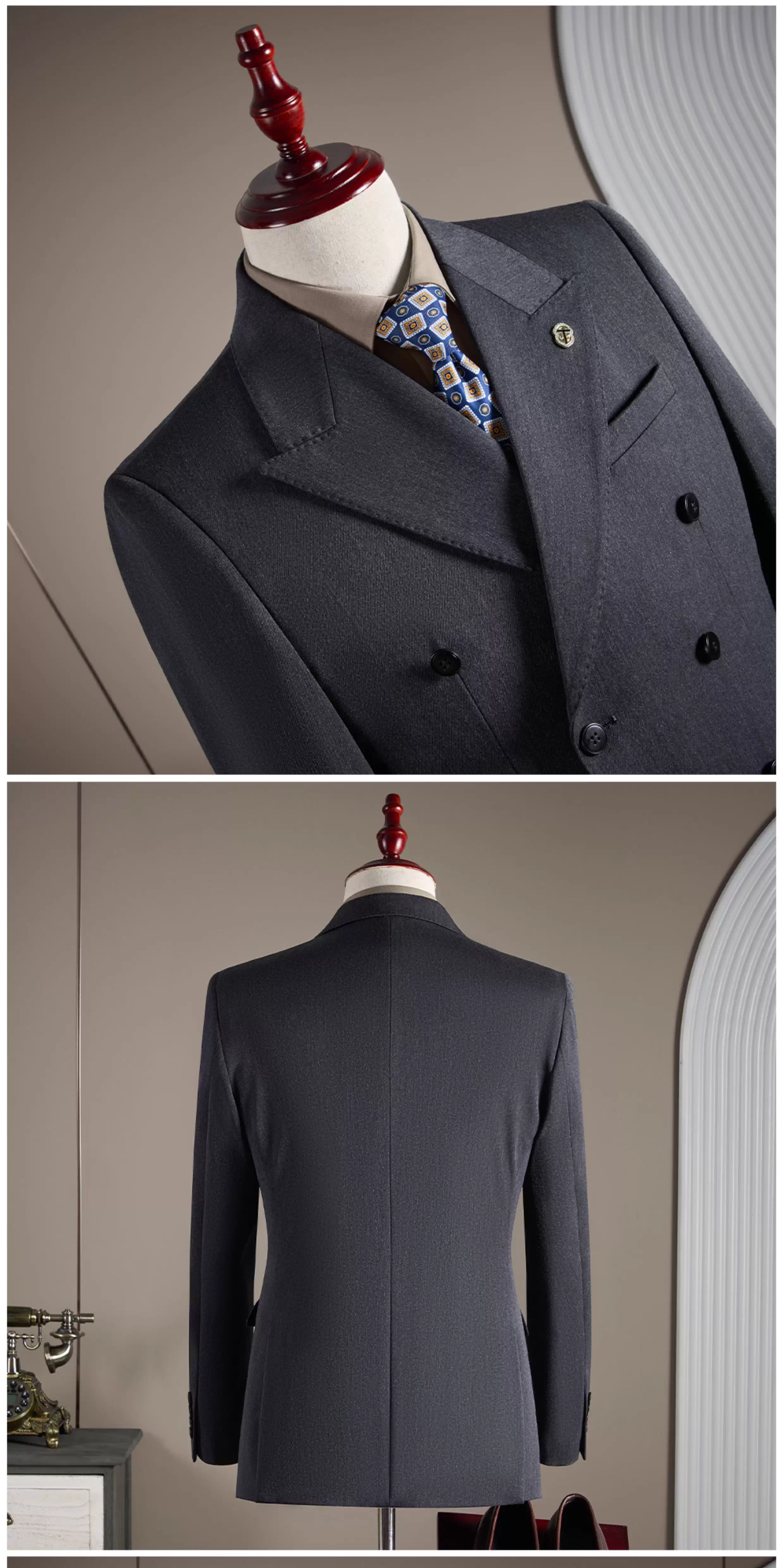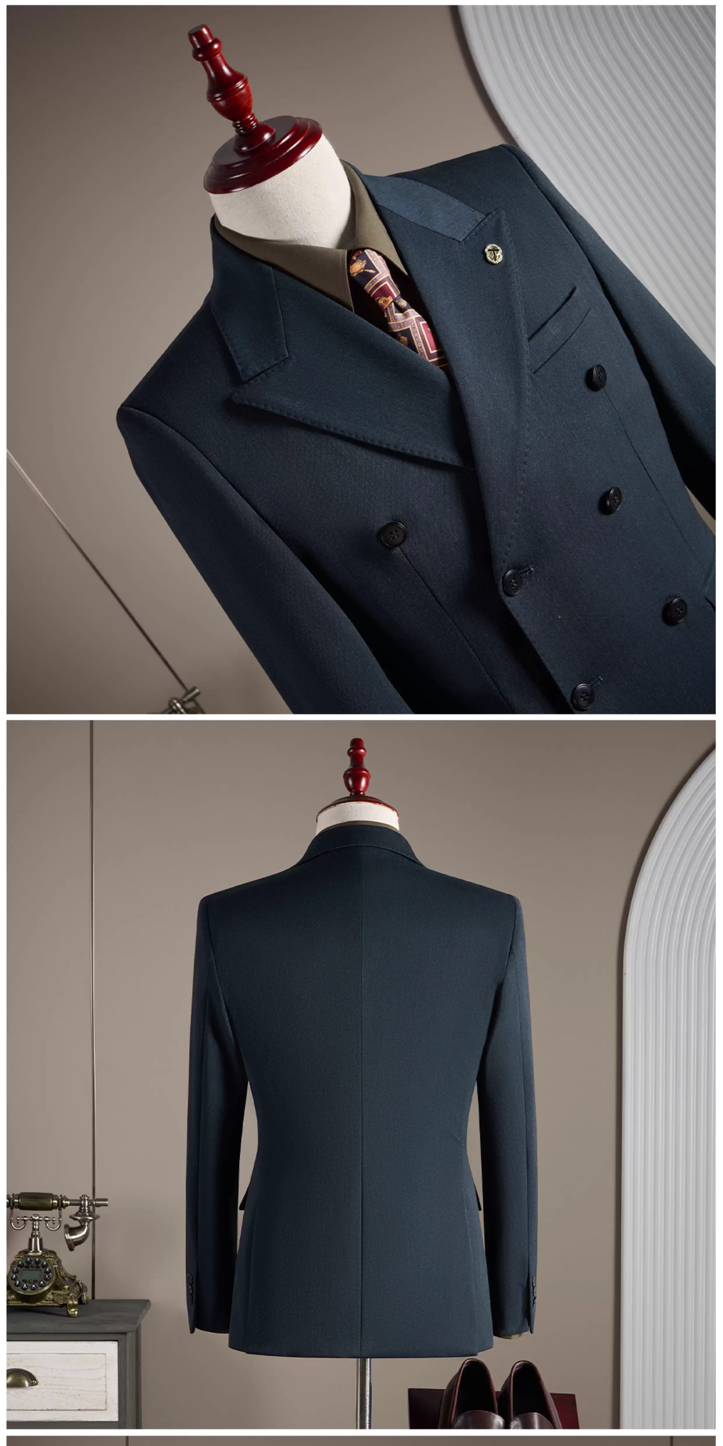 - Bộ vest nam chất liệu len, kiểu dáng hai hàng khuy, trang phục công sở lịch lãm, chất lượng cao, ôm dáng, size lớn, bộ vest cưới chú rể ba món