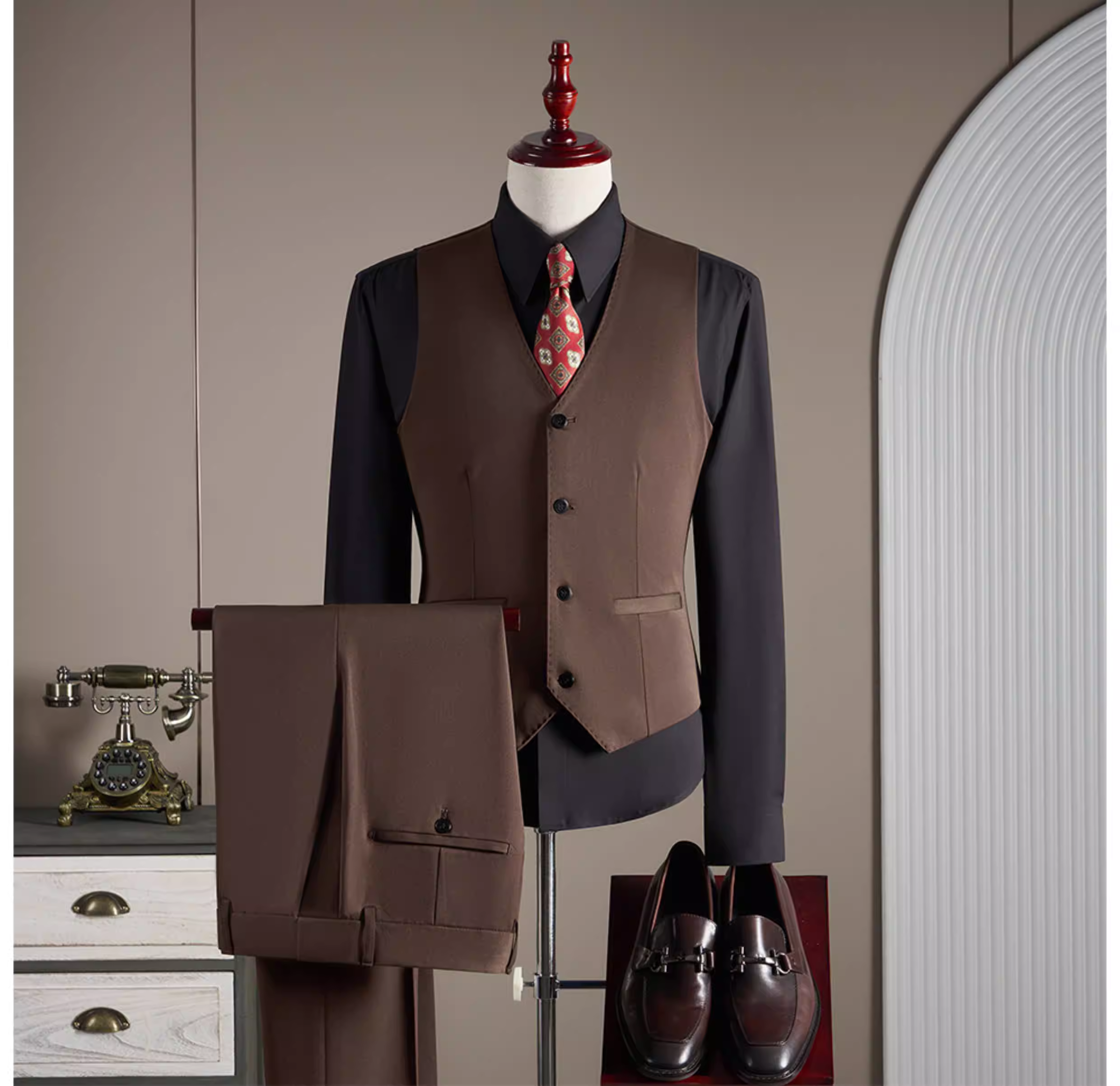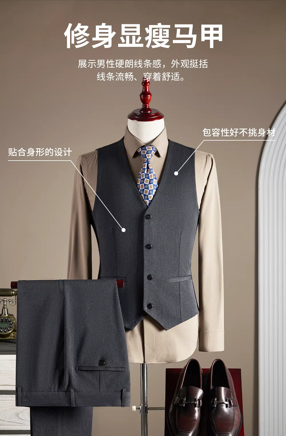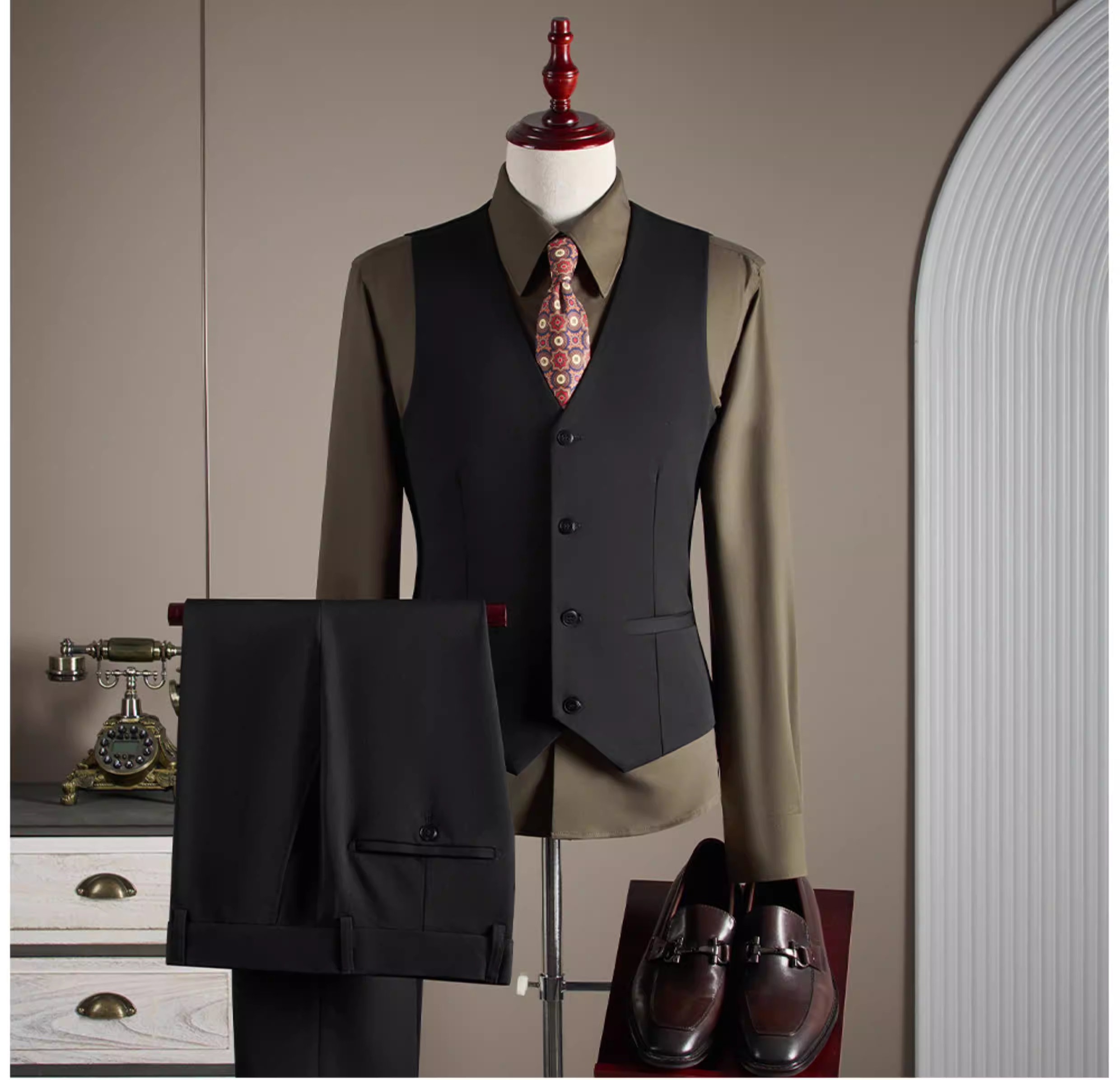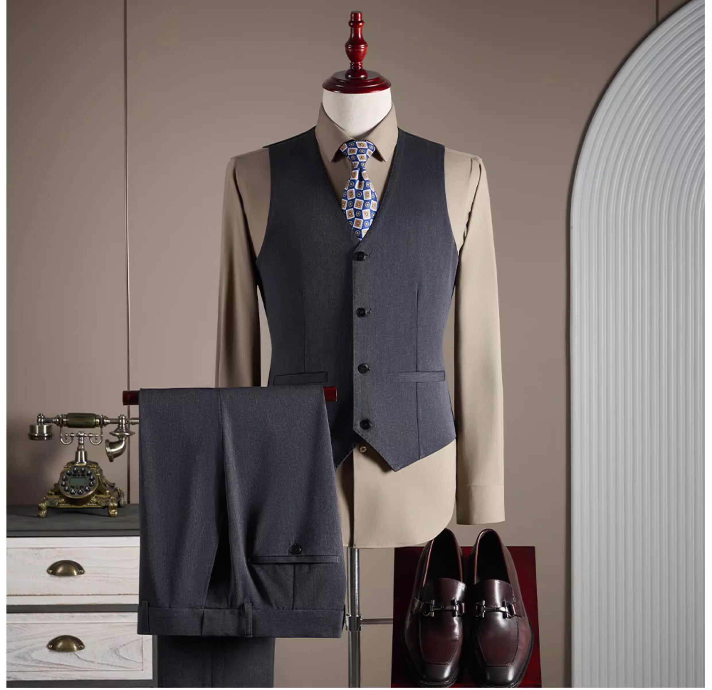 - Bộ vest nam chất liệu len, kiểu dáng hai hàng khuy, trang phục công sở lịch lãm, chất lượng cao, ôm dáng, size lớn, bộ vest cưới chú rể ba món